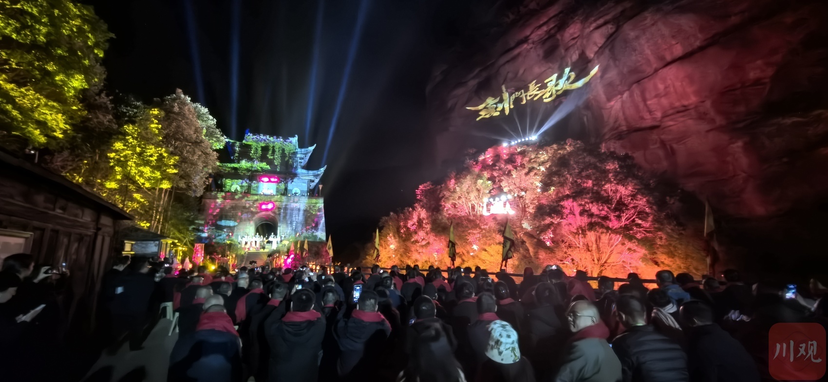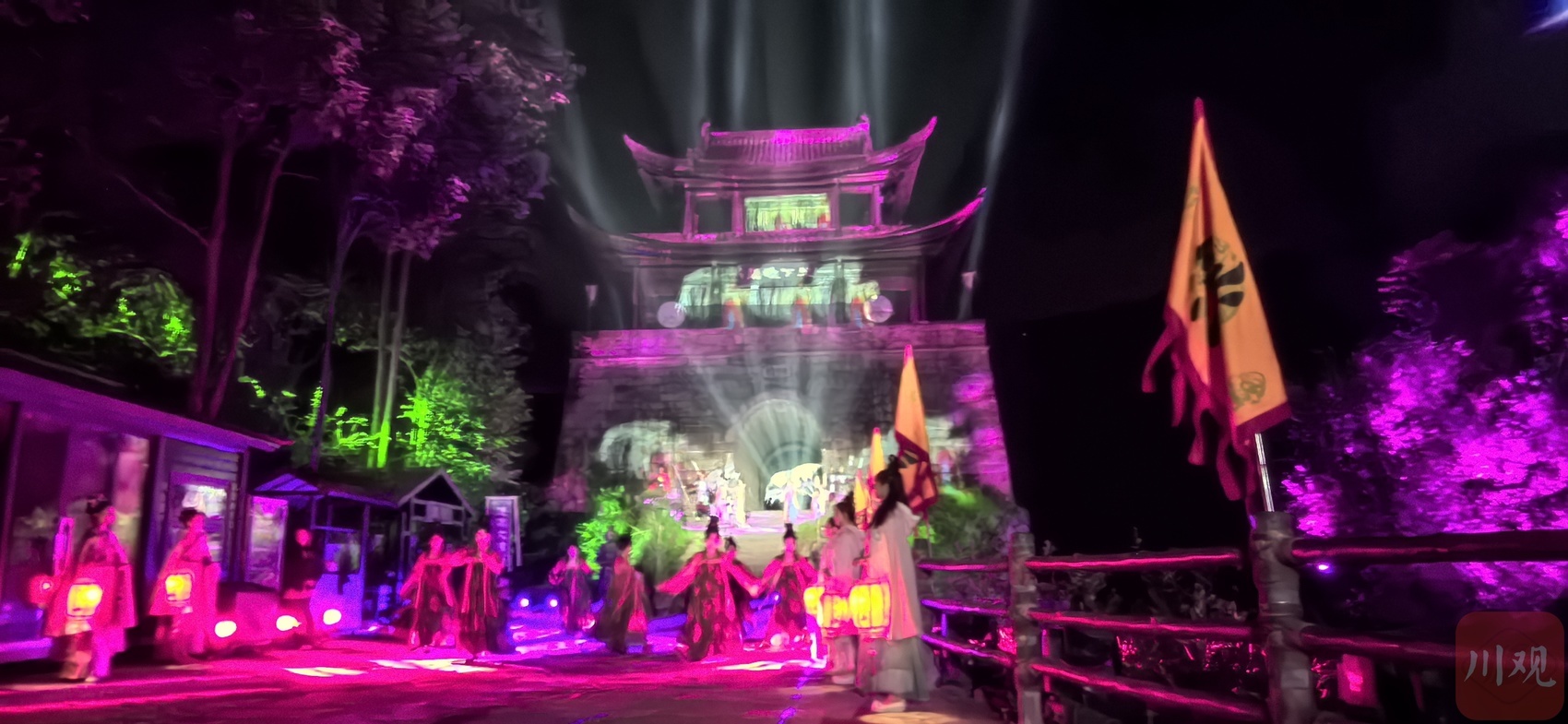 “以跨越时空的情感共振,营造全方位的夜游场景体验,为游客开启了一场全新的可视、可听、可互动等多重感官体验盛宴。”据剑阁县文旅体局相关负责人介绍,《剑门长歌》是全国首个实景崖壁灯光演艺秀,投资8800万元,200余名工作人员历时2年多精心打造。自2021年亮相以来,不断填补了剑门关景区夜游的空白,也极大地提增了剑门关镇以及县城夜经济的发展。(视频提供:王德强)