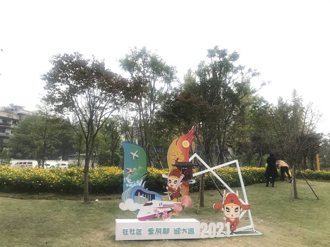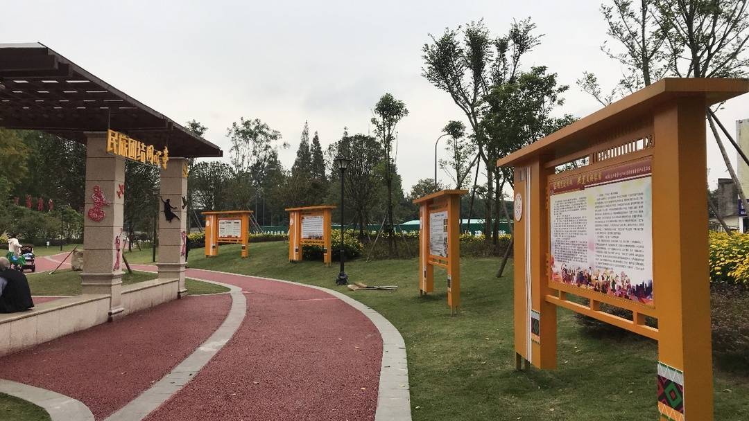 除了对公园外貌进行升级,社区还赋予了公园内核更深层次的“寓意”。走在园区内,随处可见代表着民族团结的“芙蓉花+太阳神鸟”logo;响应“爱成都·迎大运”的各类健身器材、儿童游乐设施;挂在植物上科普知识的趣味吊牌……蓉城一家亲公园已成为集民族文化、科普知识为一体的运动型公园。