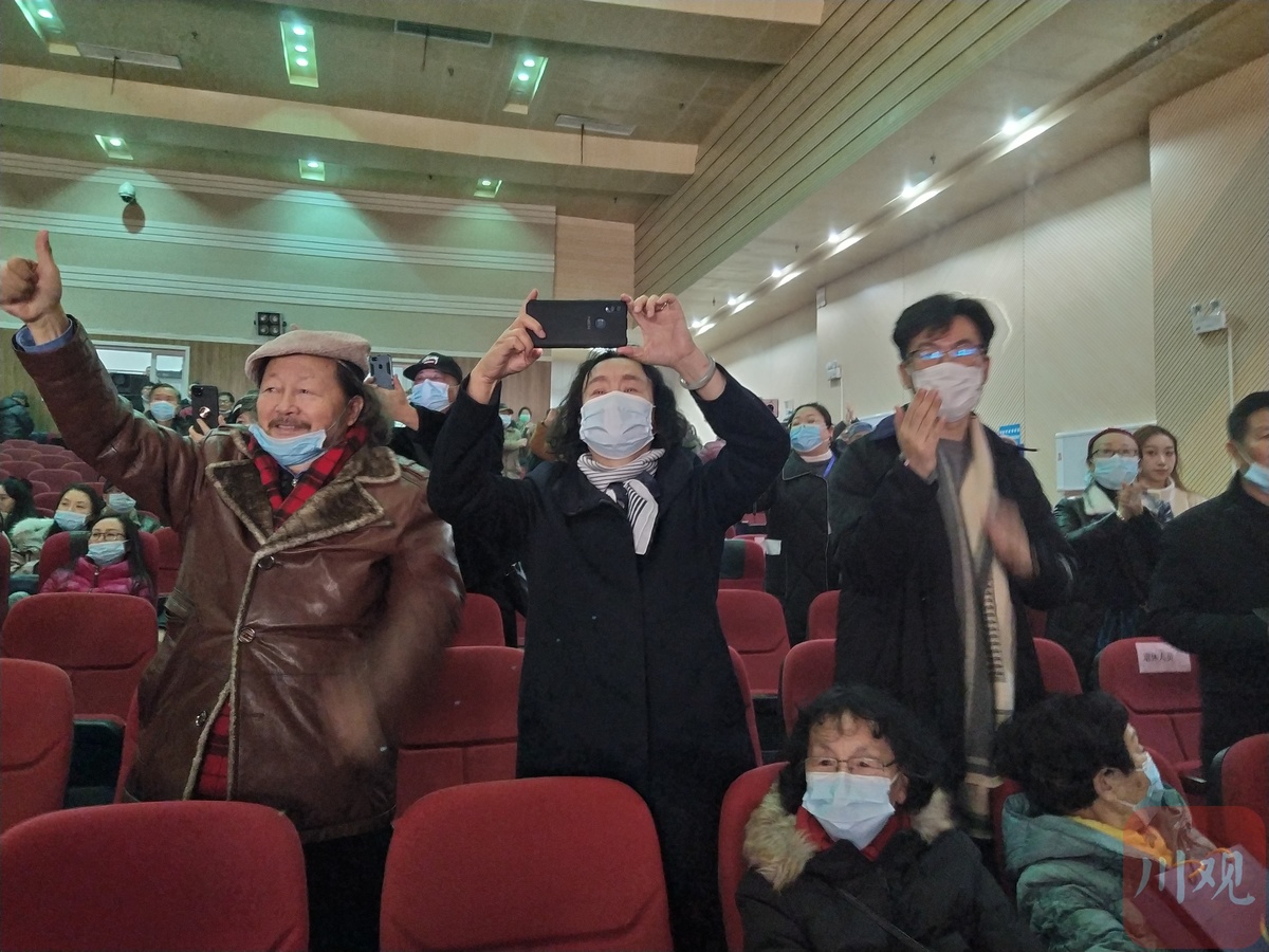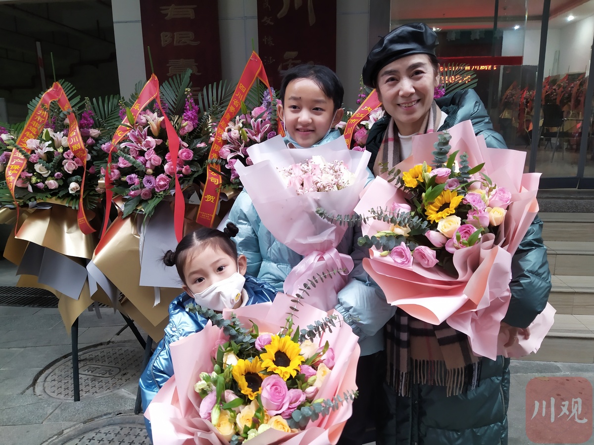 演出结束后,掌声经久不息,重庆川剧名家沈铁梅作为嘉宾代表向主创送去鲜花并合影。