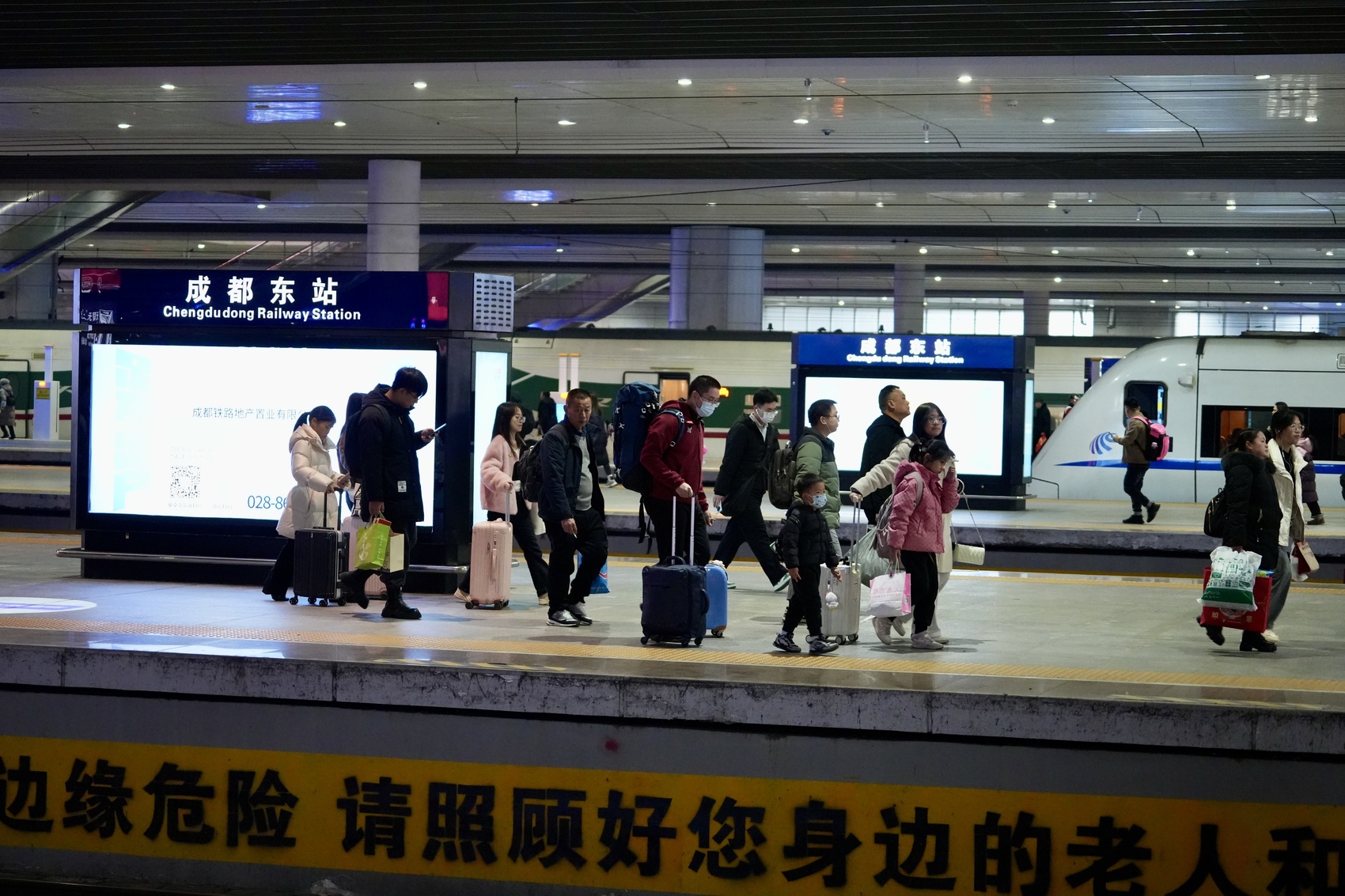2月3日春运返程高峰来临,成都东站发送旅客25.9万人次,到达旅客突破30万人次,达到31.9万人次。如果把视野拓展到成都局管辖全域,当日发送旅客达到181.34万人次,同比增长7%。