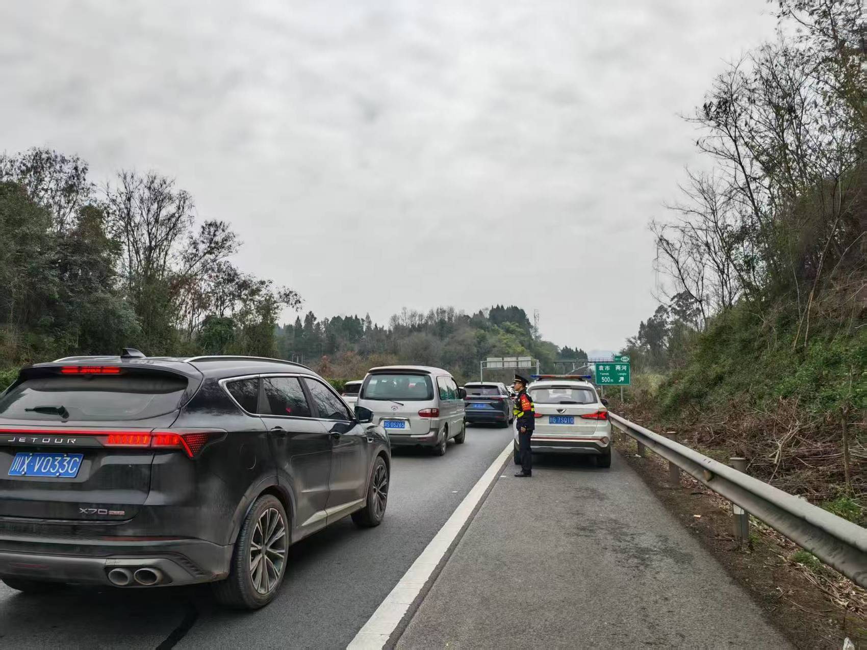 2月4日 G42沪蓉高速邻垫段车多缓行,四川交通执法引导车辆有序通行。 四川省交通运输厅高管局供图