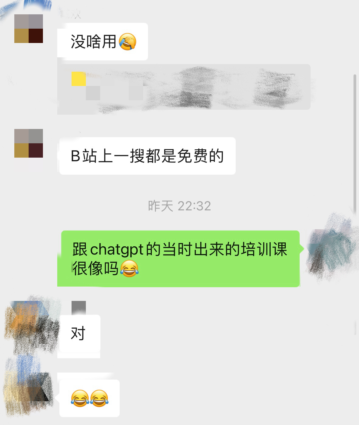 网友“臧欢”的评价更加犀利了。“别买,没啥用,去哔哩哔哩上一搜都是免费的。”他表示,自己看透了这些“套路”,实际上就是之前类似于ChatGPT等人工智能培训课换成了DeepSeek的“壳子”,课程内容并没有太大的改变。