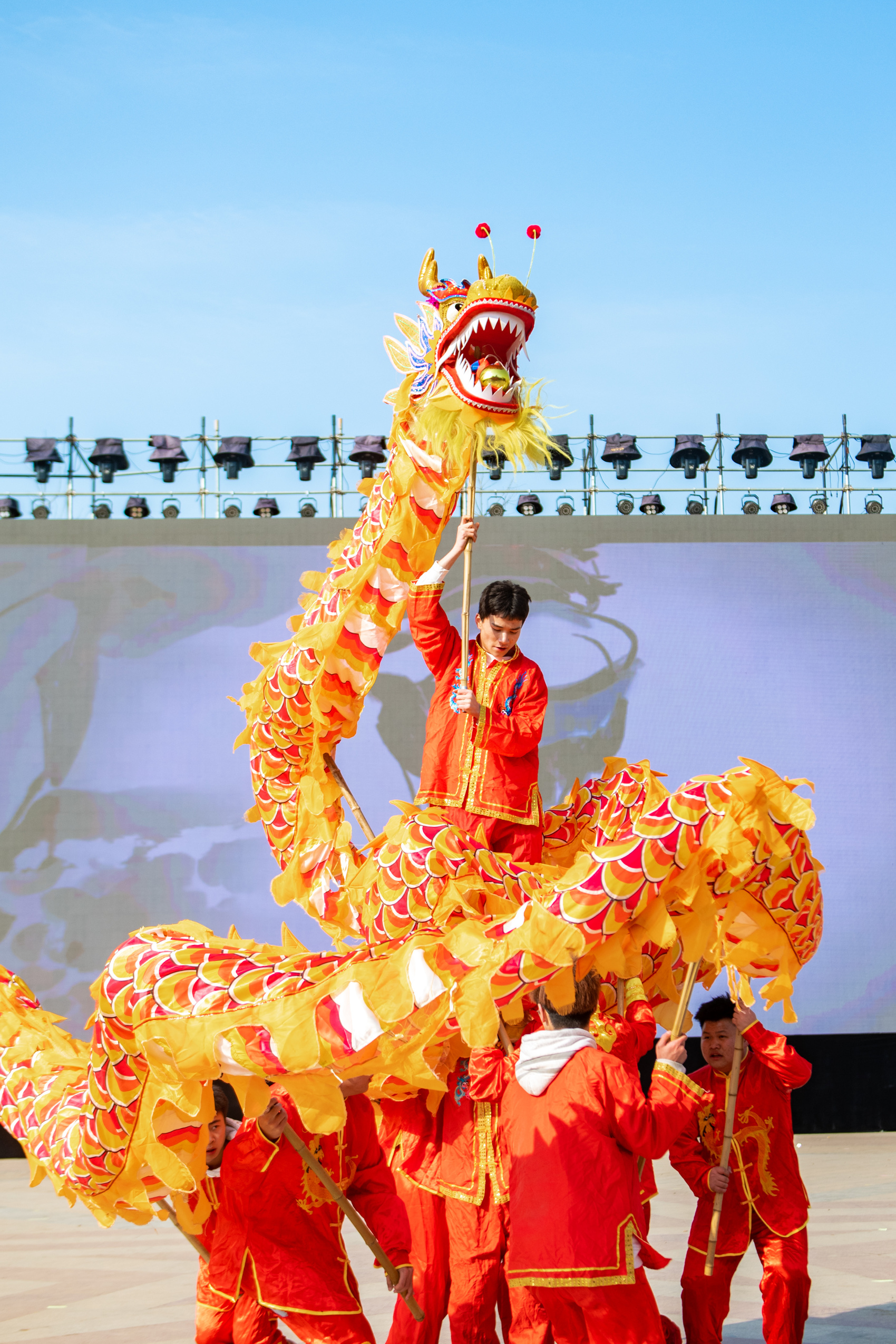 来自达州市通川区、达川区、万源市、宣汉县、大竹县、渠县、开江县、达州高新区、达州东部经开区的9支舞龙队轮番上阵,136名选手身着鲜艳的服装,手持巨龙,伴随着激昂的鼓点,或腾跃、或盘旋、或穿插,将舞龙的精髓展现得淋漓尽致。