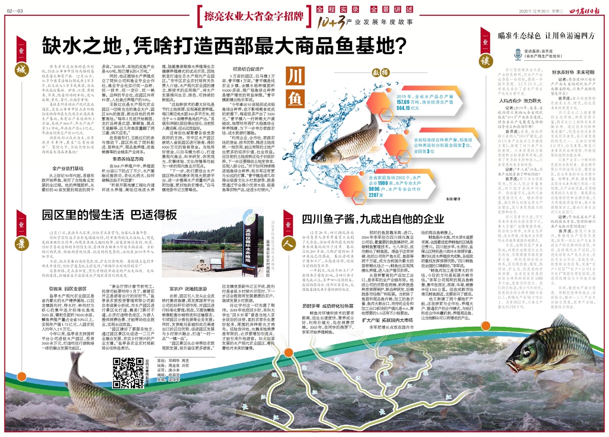 12月30日,四川农村日报推出《擦亮农业大省金字招牌 全程实录全景讲述10+3产业发展年度故事》系列报道之川鱼篇。