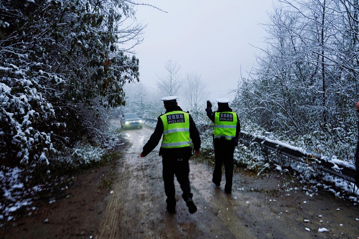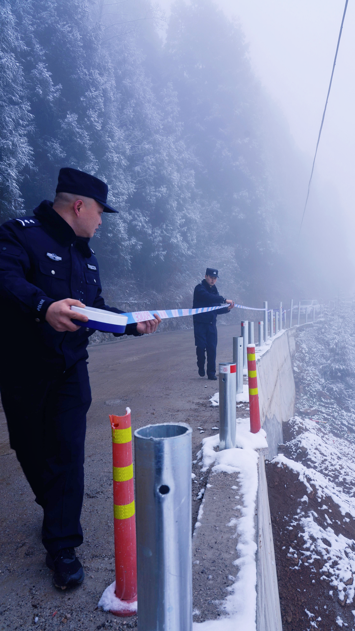近日,受降温影响,北川羌族自治县山区内普遍降雪,到处银装素裹风景格外漂亮,慕名而来赏雪的市民也不断增多。但山区降温降雪致使道路湿滑,再加上复杂的地形,存在安全隐患。北川公安迅速调整警力,加大对山区周边的巡逻力度,对路面积雪积冰路段设置安全标识,用实际行动演绎最美“雪警”。
