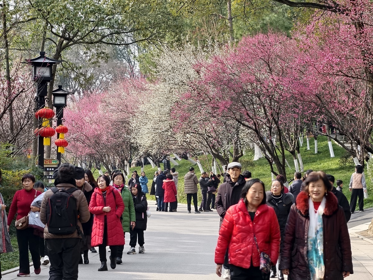 红梅花开,万紫千红! 人们穿梭其间,如知如醉,拍个照,留个影,愉悦,幸福!