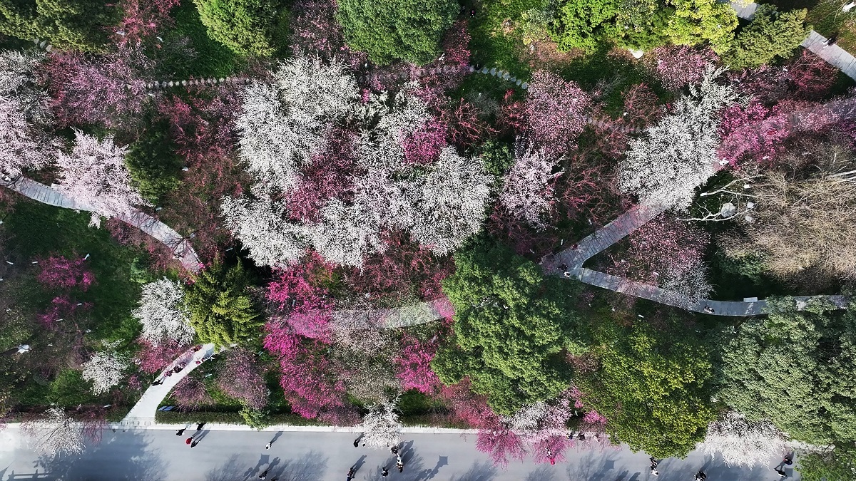 2月11日,川观新闻记者走进绵阳市西山公园,看见成片的梅林已逐渐被粉色所装点,园内弥漫着淡淡的清香,不少游客趁着暖阳在园内休闲散步、拍照打卡,好一幅城市宜居和美画卷。