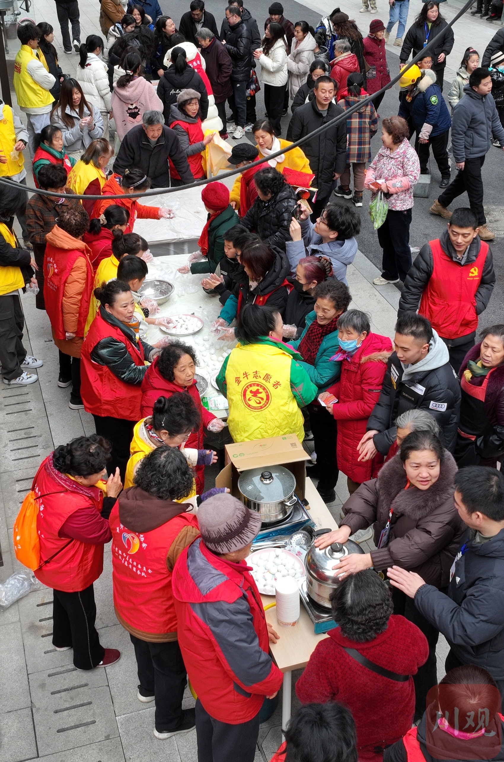 社区的大姐大妈们煮汤圆忙前忙后的,辛苦啦,这汤圆吃着肯定特甜