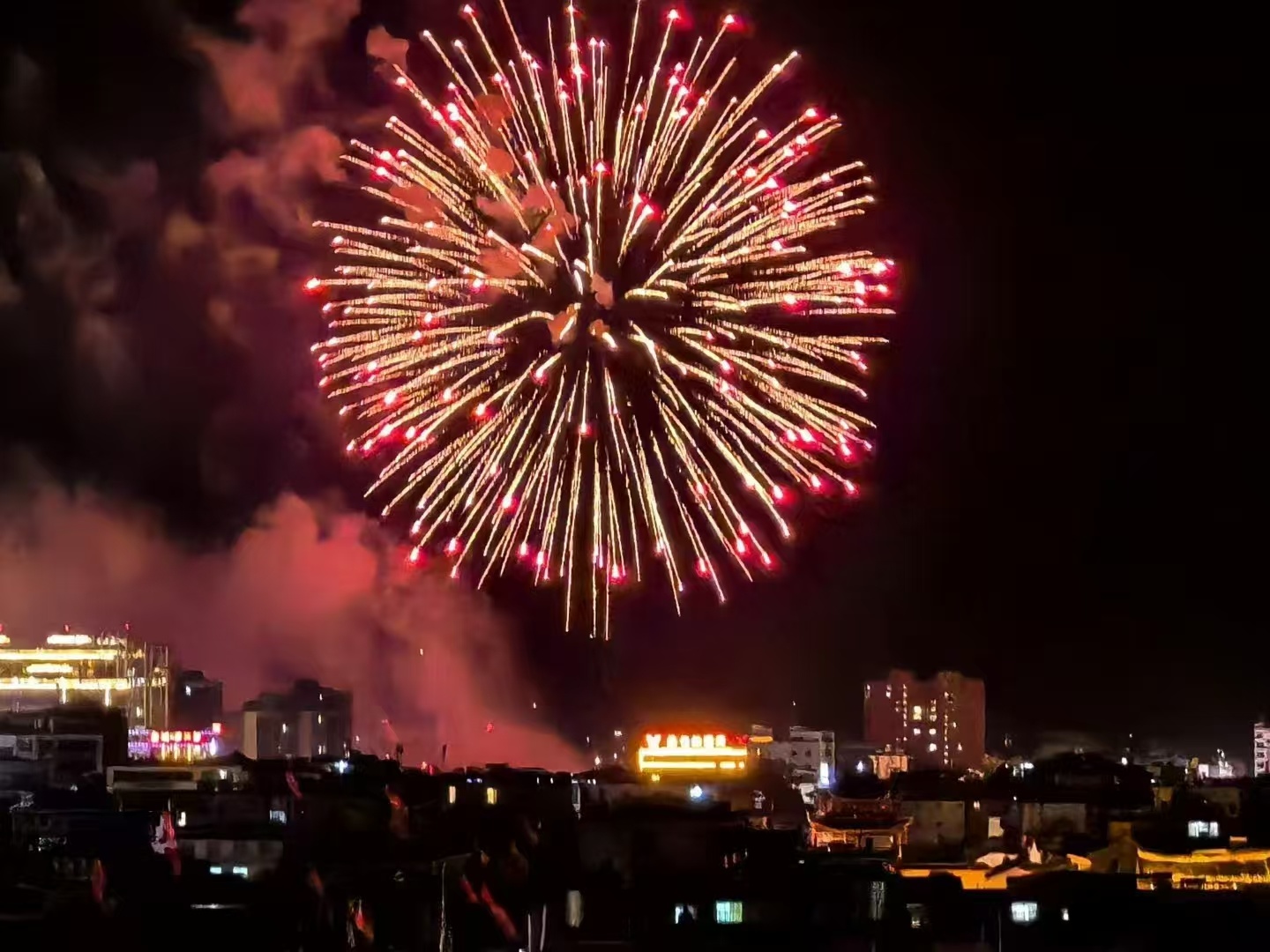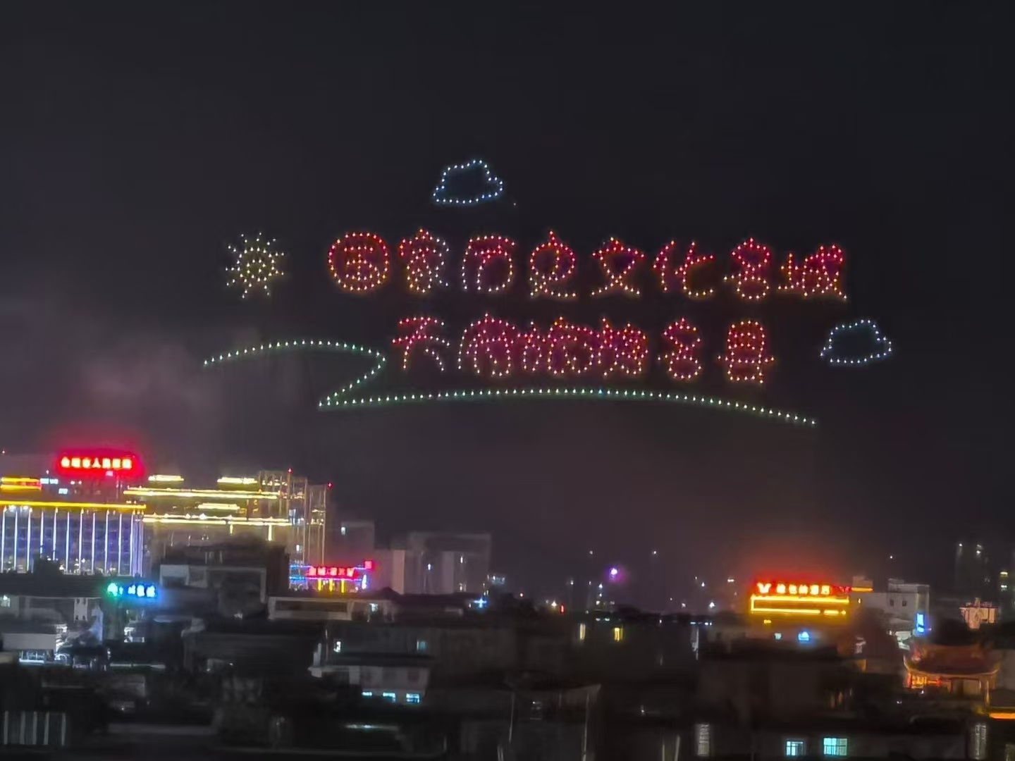 当晚,会理还举行了精彩的无人机“灯光秀”和“烟花秀”。灯光和烟花,照亮了会理夜空,带来美好祝福。