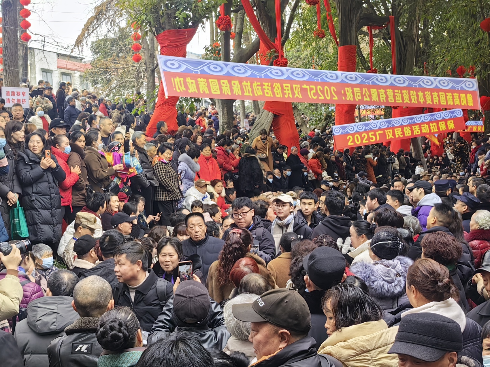 2月13日(农历正月十六),德阳广汉市区万人空巷,热闹非凡。当天,一年一度的“拉保保”民俗活动举行,数十万群众涌入房湖公园和金雁公园“游百病”“拉保保”。