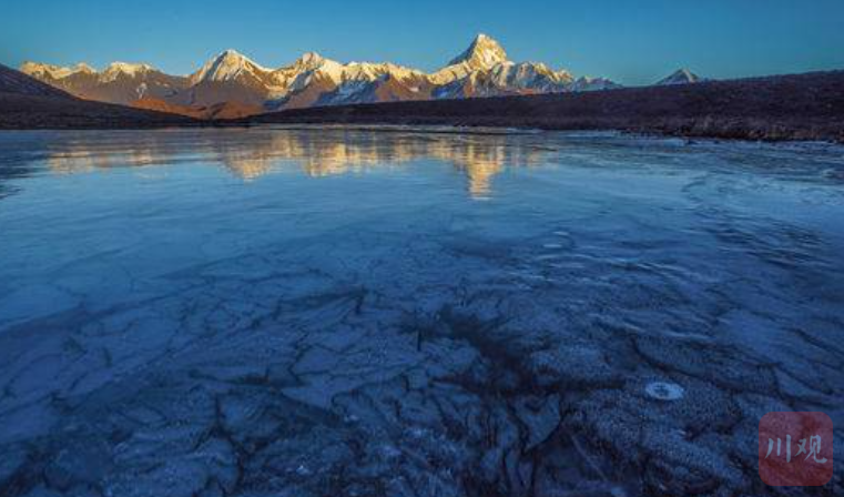 冰湖上的贡嘎山脉。尹钢 摄