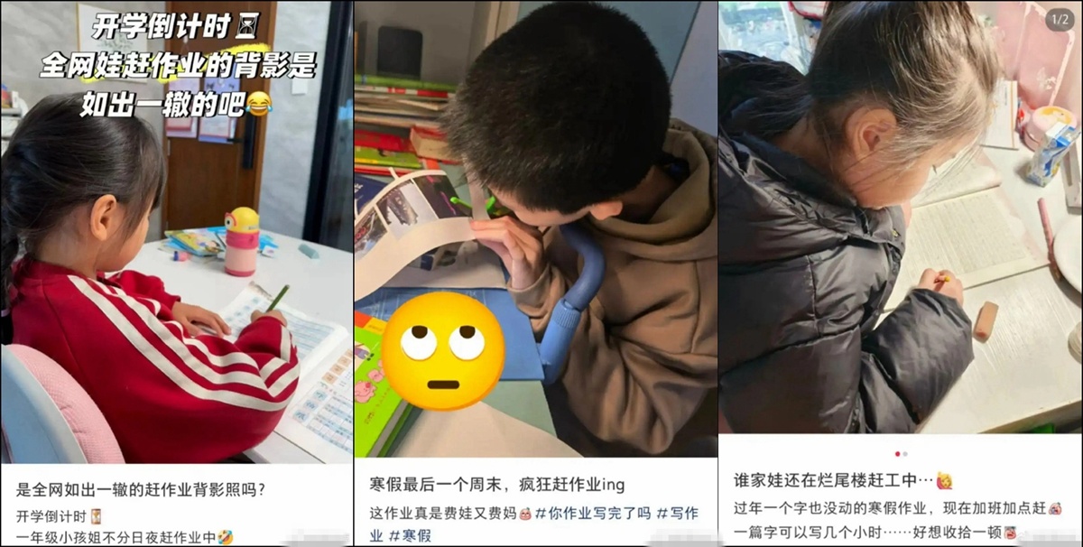 寒假余额告急,这两天,全国各地一年两度(寒假、暑假)“史诗级赶作业”大戏正在上演。在社交媒体上,家长们纷纷分享孩子们加班加点赶作业的身影,达成了“全国统一”。