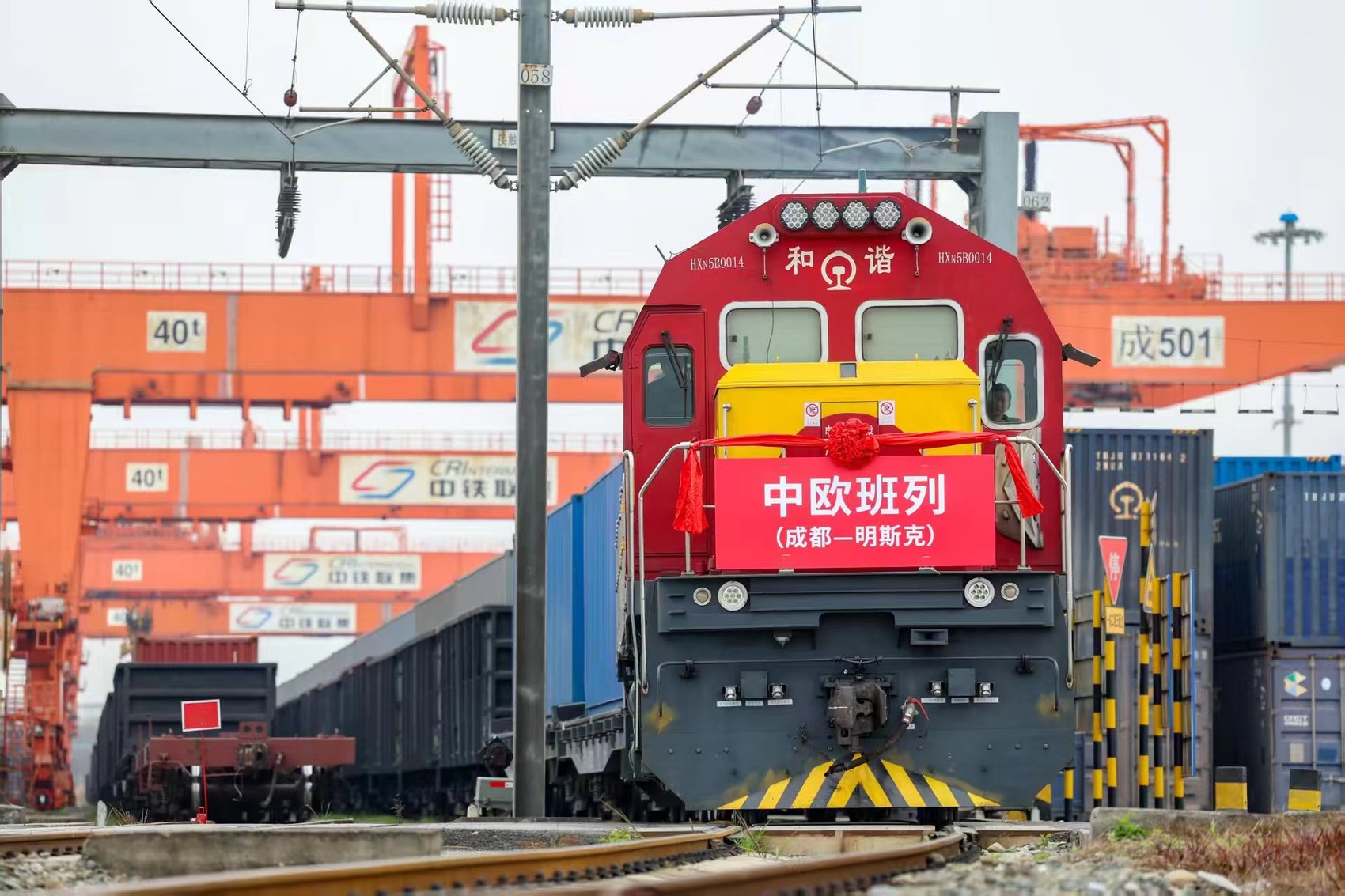 2月14日,中欧班列(成都—明斯克)大洋物流精品专线从成都国际铁路港首发。