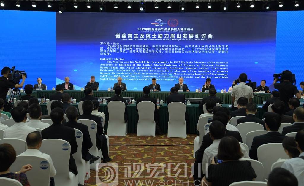 9月14日,参加第十六届中国西部海外高新科技人才洽谈会(简称“海科会”)的诺贝尔经济奖得主、美国哈佛大学商学院金融学教授罗伯特·默顿,世界桥梁建筑大师、美国国家工程院院士、中国工程院外籍院士邓文中,物理学家、英国物理学会院士、伦敦玛丽女王大学凝聚态和材料物理研究中心主任、物理天文学院副院长马丁·窦伏博士(Dr.Mating Travis Dove),分子细胞学家、中国科学院院士刘新垣和物理学家、国际欧亚科学院院士马俊如五位科学家,以及20余名海外华侨华人走进眉山,助力地方经济发展。