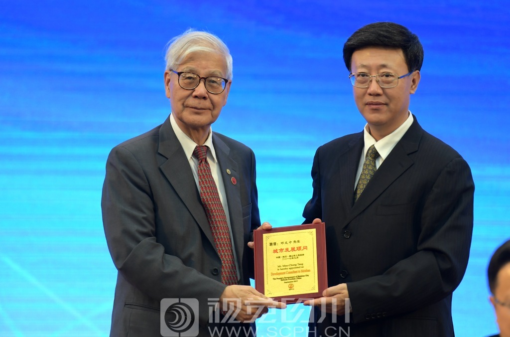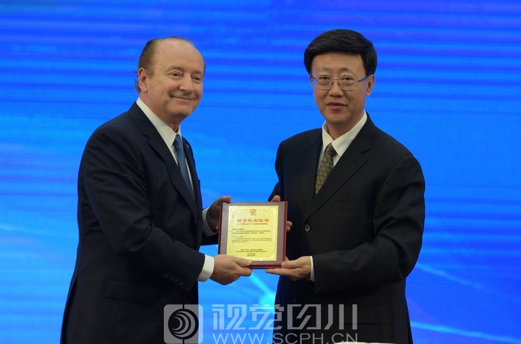 眉山市人民政府向罗伯特·默顿颁发“荣誉纪念证书”。