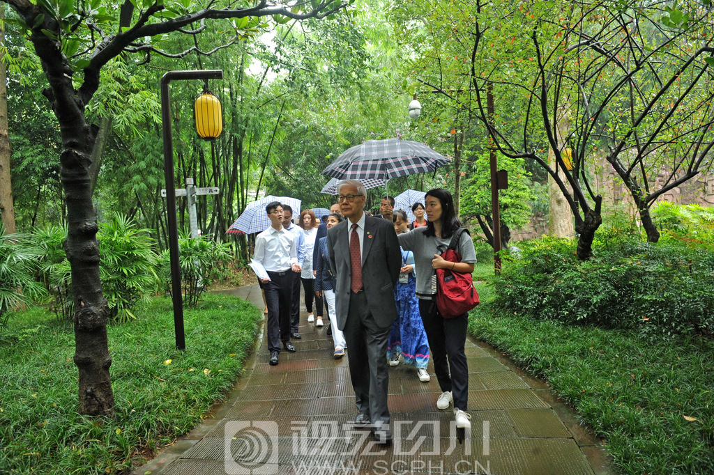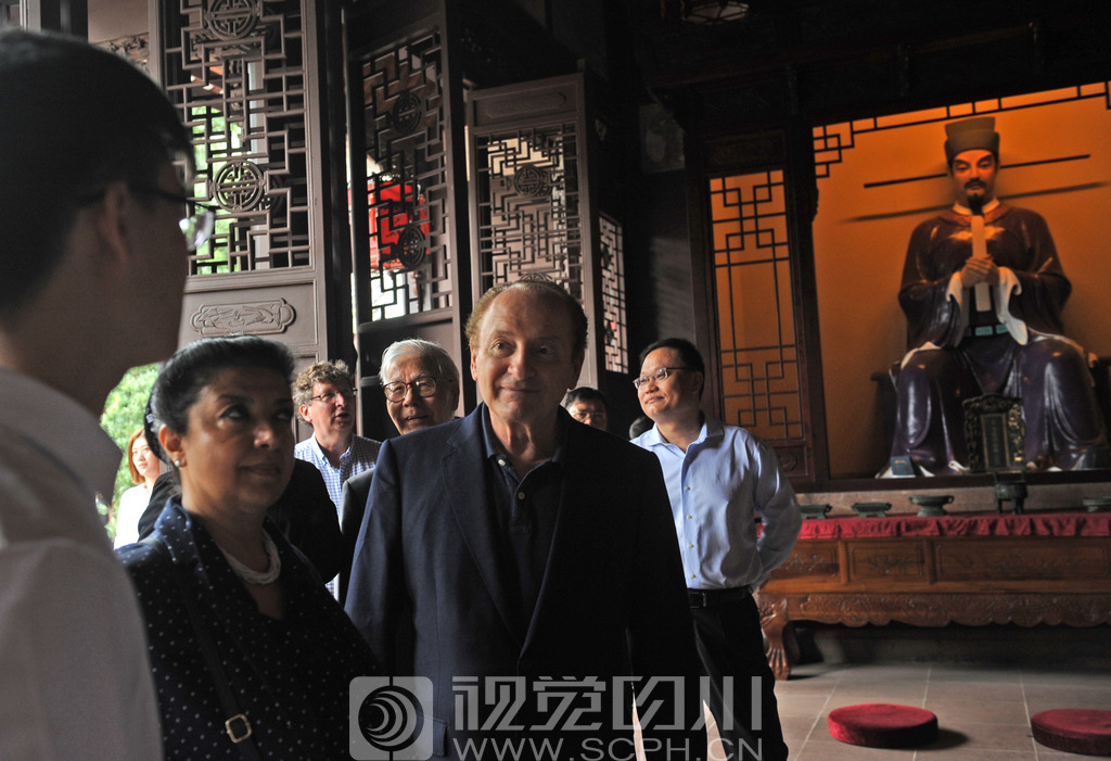 罗伯特·默顿、邓文中等5位诺贝尔奖得主及院士在三苏祠参观。