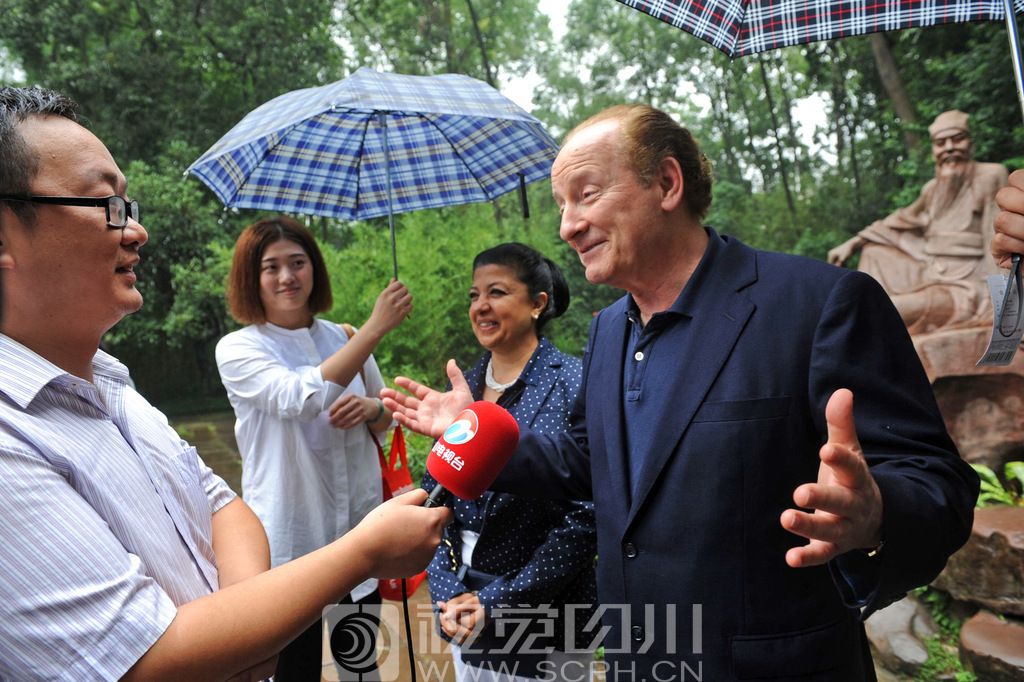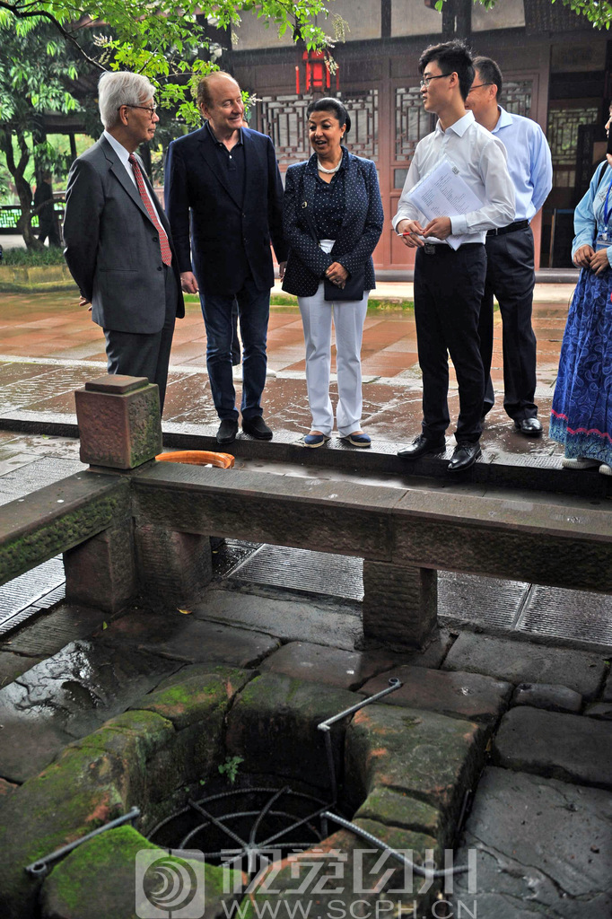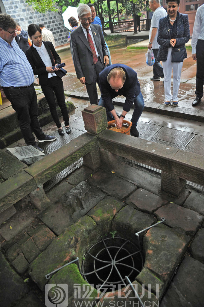 罗伯特·默顿按照当地风俗,捧起三苏祠老宅古井水洗手。