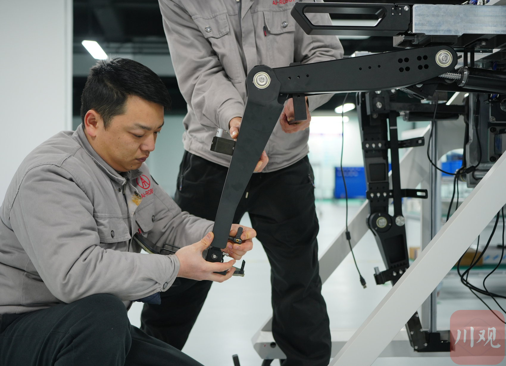 车间里,工人们认真组装调试每一台设备,单零配件就超过200个,不能有半点马虎。目前,企业正加紧生产,以满足医疗康复、科研等领域的迫切需求。工人们加班加点,确保订单按时交付。企业负责人表示,今年的订单量同比大幅增长,尤其是医疗康复类外骨骼机器人需求旺盛。