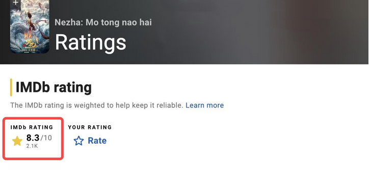 记者注意到,目前在国际评分网站IMDb上,《哪吒2》获得8.3分,评论区涌现大量海外粉丝的“自来水”推荐。