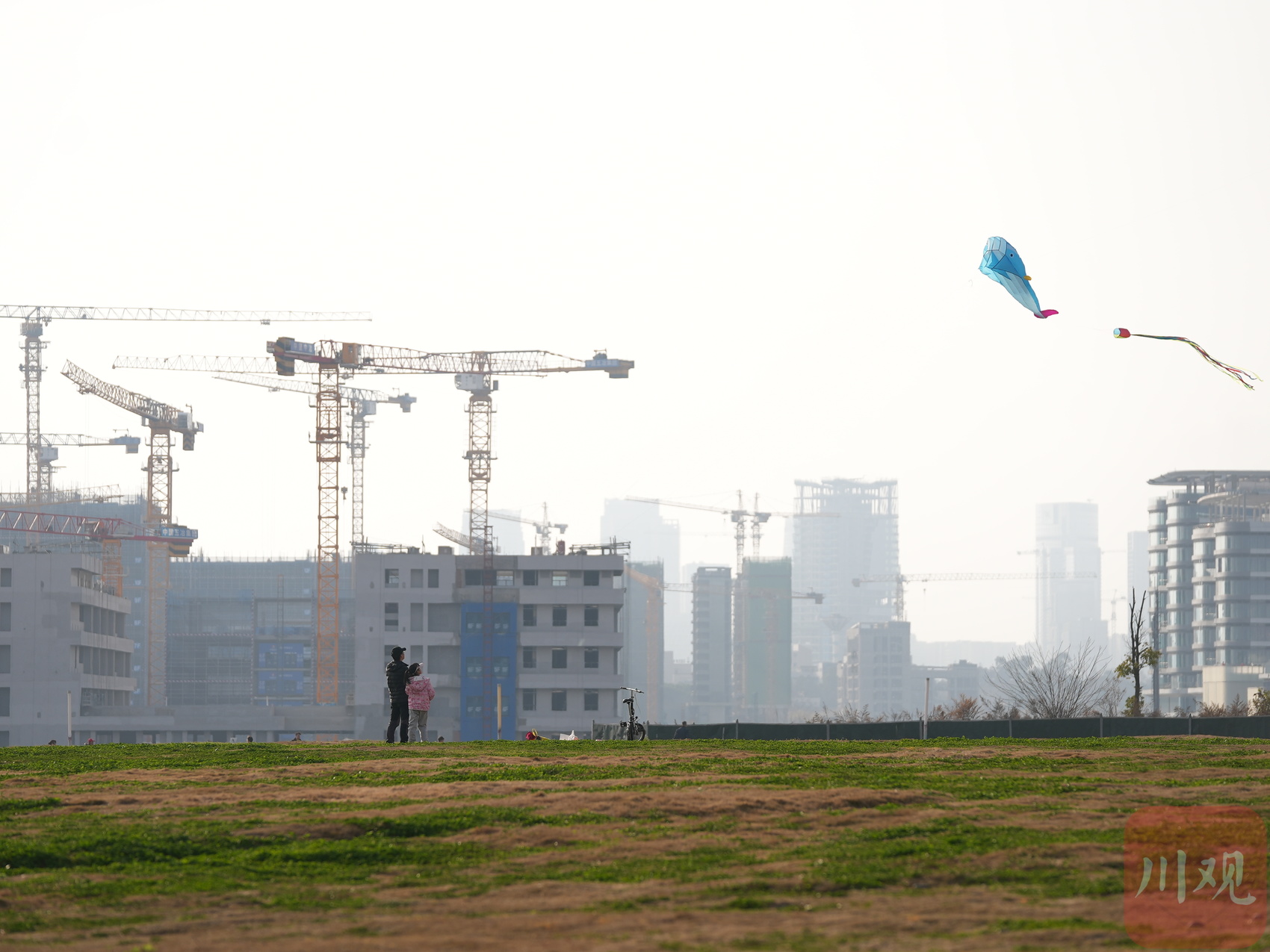 2月15日,成都市锦江区,市民放飞风筝享受周末时光。