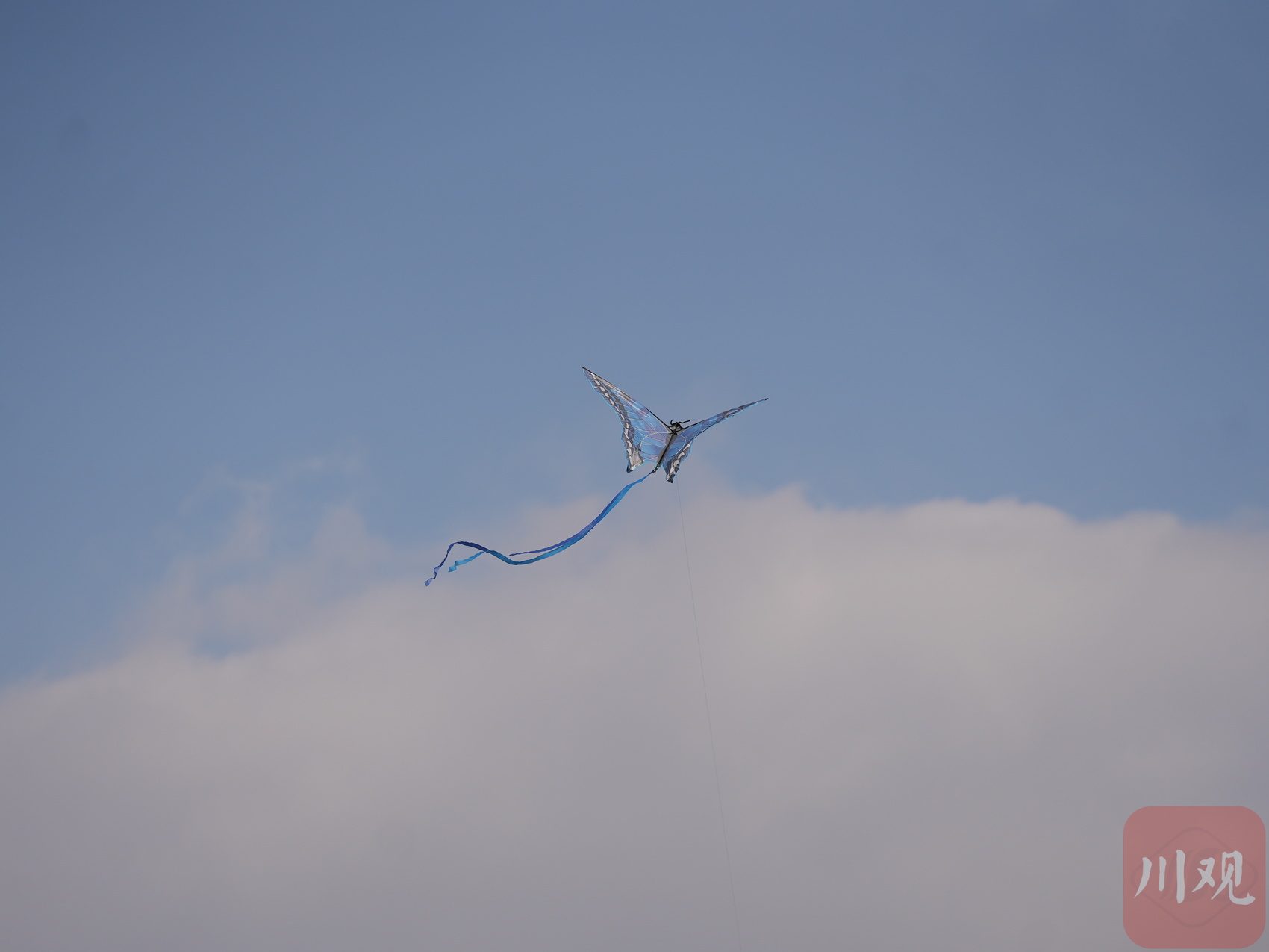 市民放飞的风筝在蔚蓝的天空中飞翔。