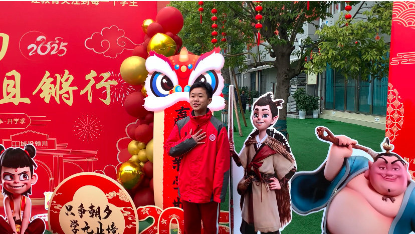 2月16日,正值成都中小学的报到日,武侯领川特别策划了一场充满“哪吒”元素的开学仪式。王智行也带着新学期的期待与挑战,回归校园生活。