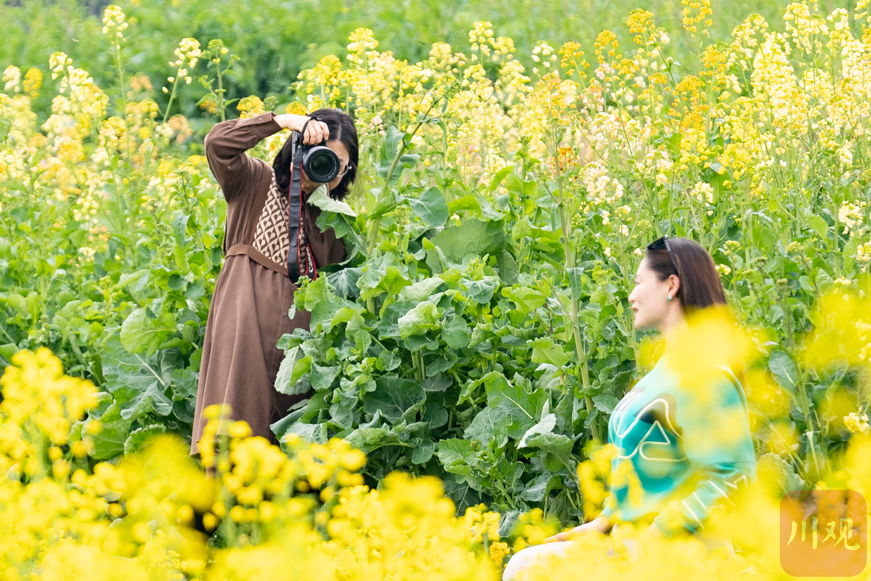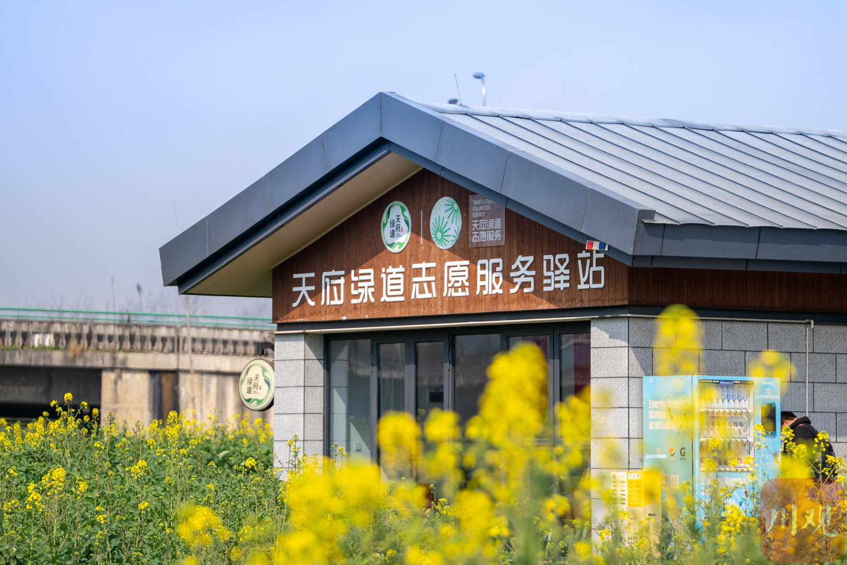 成都天府绿道三元地铁站附近路段的油菜花逐渐进入花期陆续盛开。