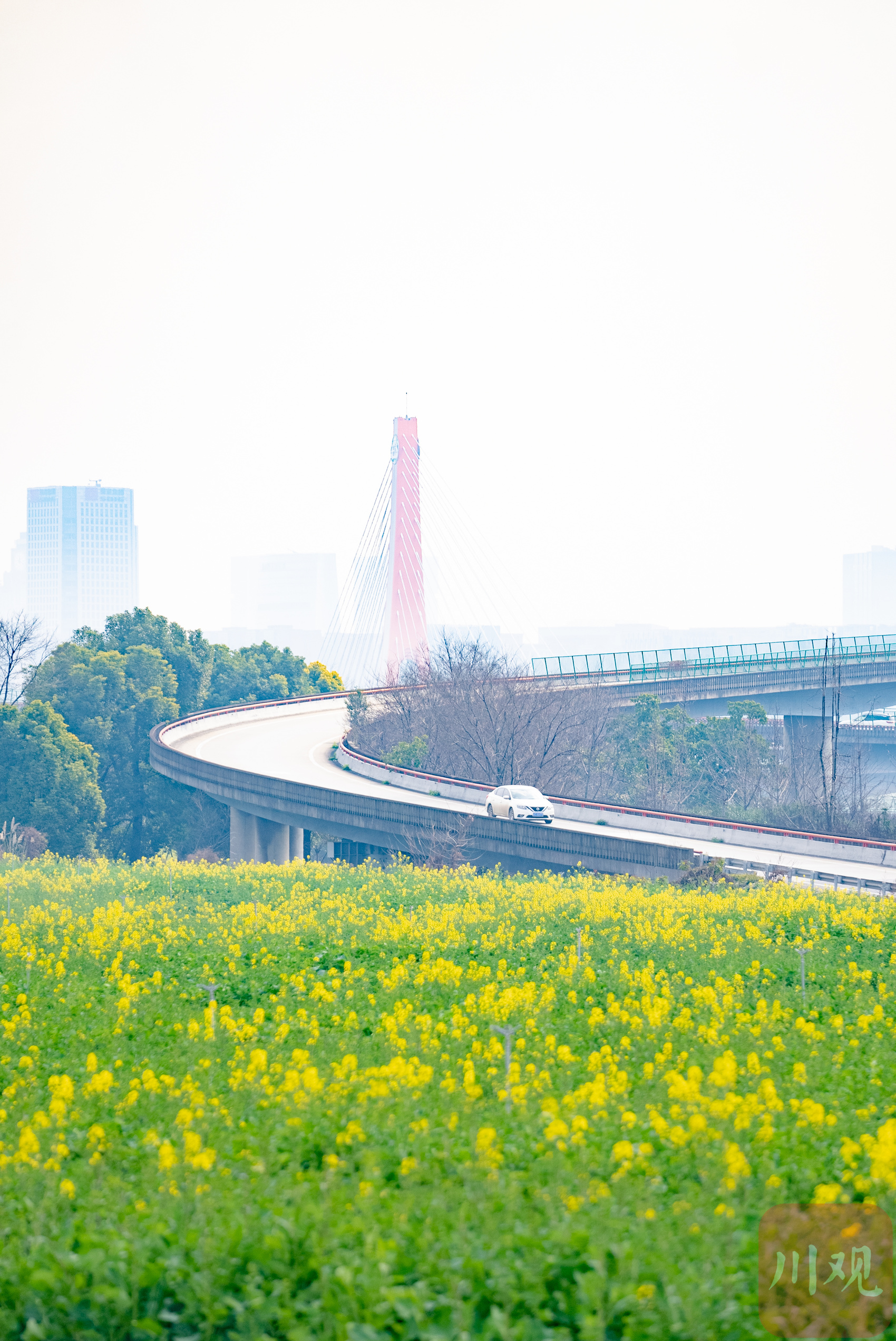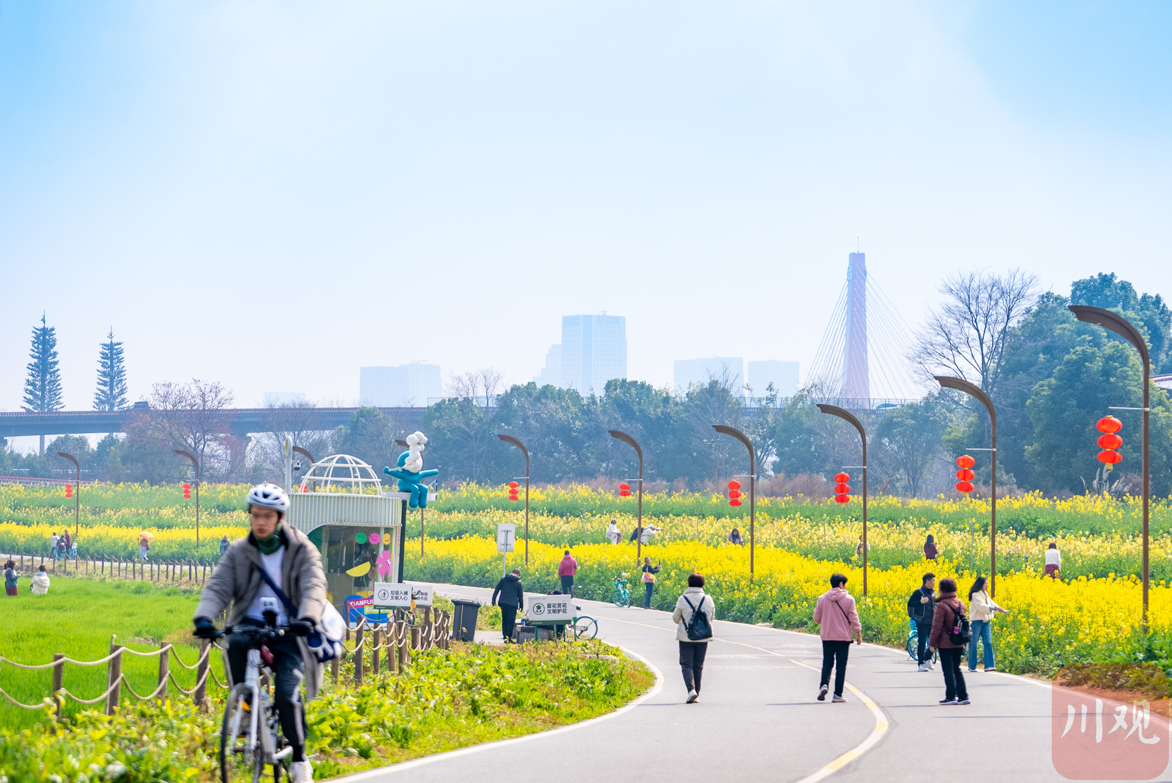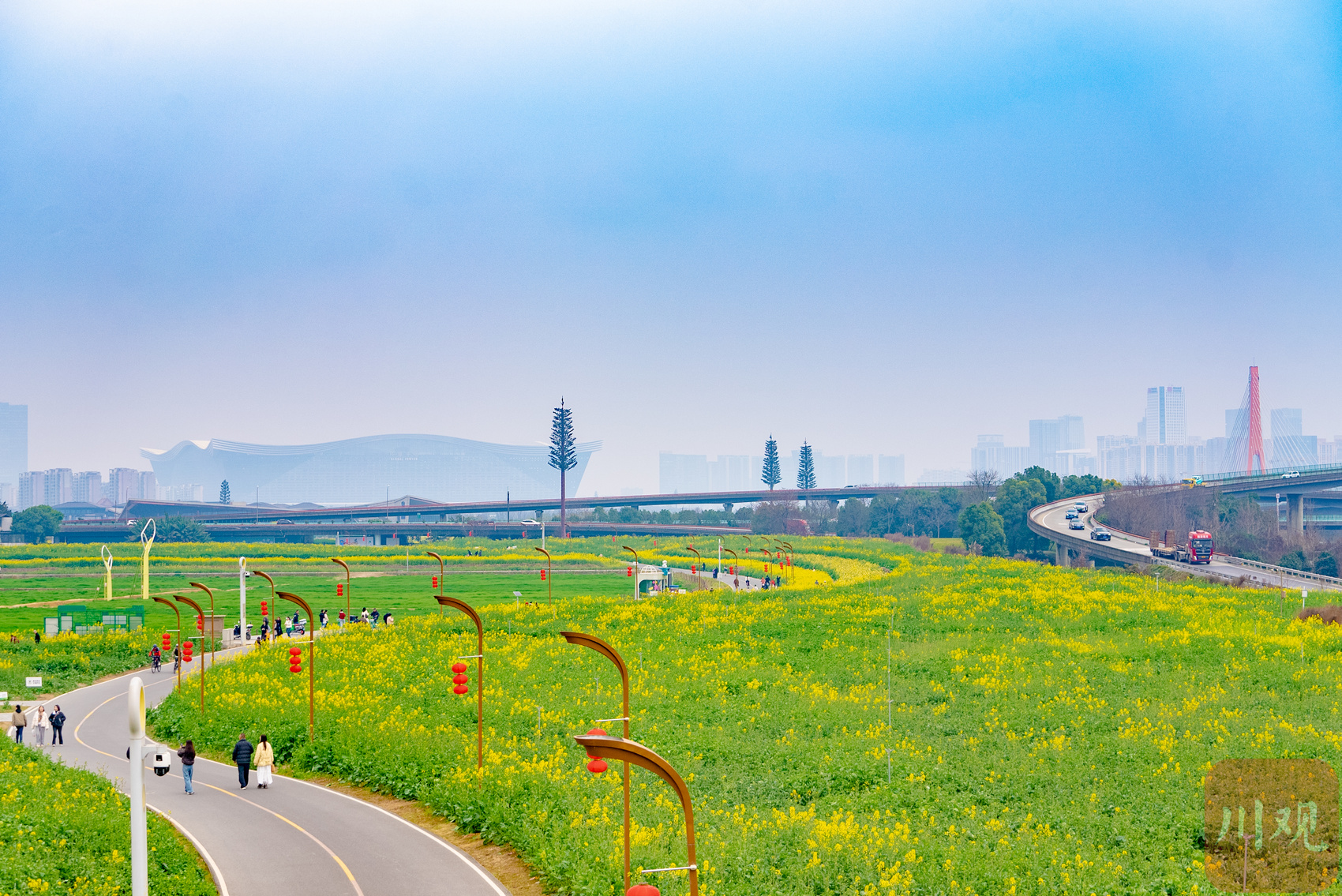 近日,成都天府绿道三元地铁站附近路段的油菜花逐渐进入花期陆续盛开。