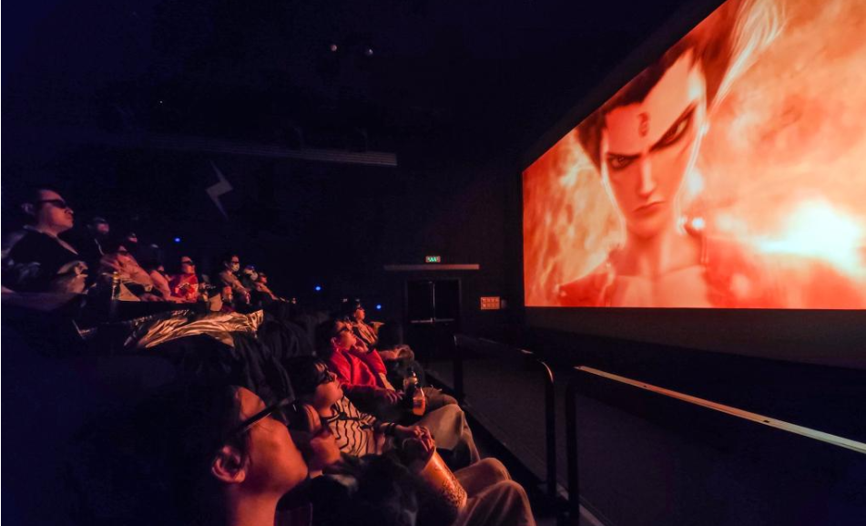 2月16日,在北京市东城区一家影院,观众在观看4D版《哪吒之魔童闹海》。