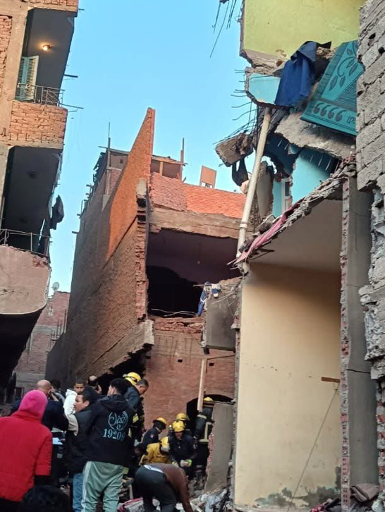2月17日,在埃及吉萨省,救援人员在发生爆炸的居民楼实施救援。