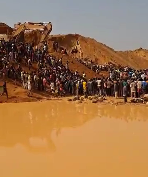 这是2月15日在马里西部卡伊区拍摄的非法运营金矿坍塌事故现场(视频截图)。