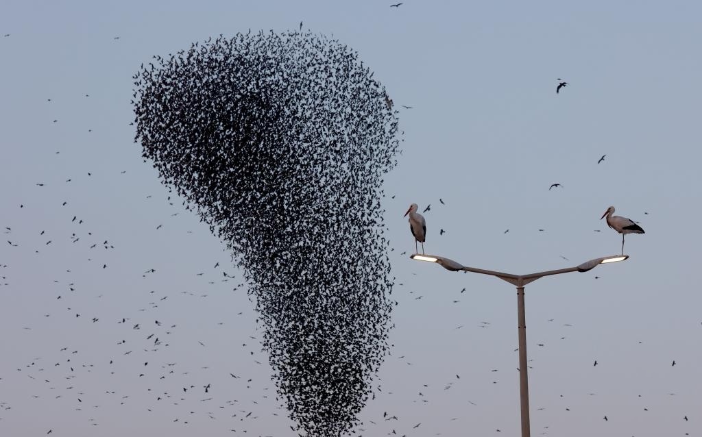 每年一二月份,大量椋鸟飞抵以色列越冬。