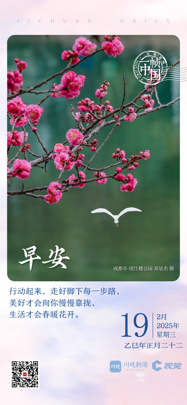 今天的《一帧中国》,川观新闻与你一起漫步成都望江楼公园,看红梅花娇艳绽放,迎接春天的到来。