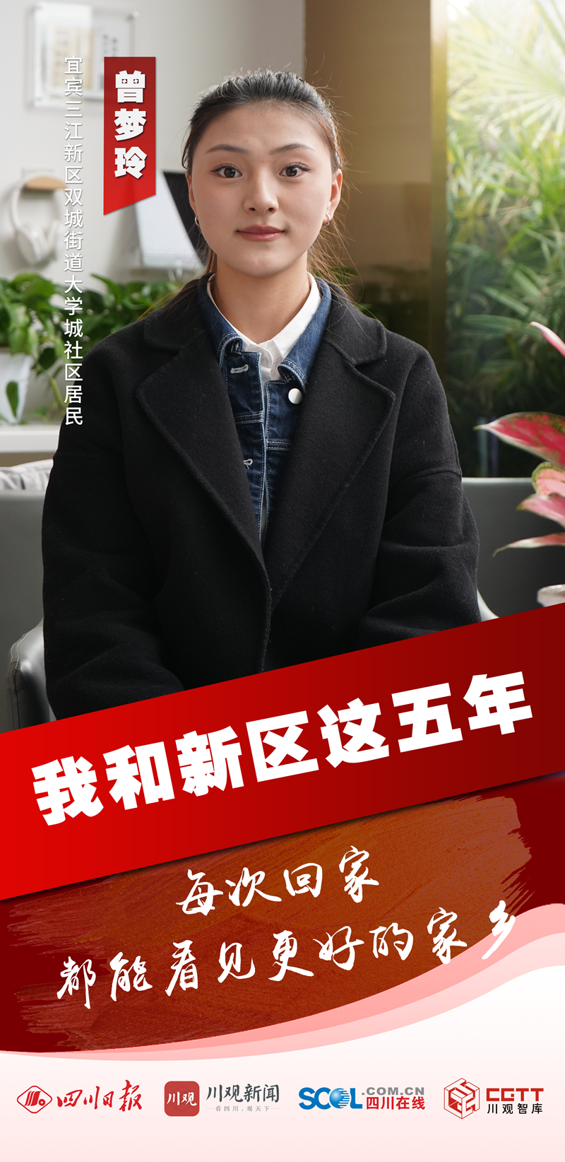 这几年,曾梦玲在外求学,寒暑假成为她见证家乡变迁的重要契机。自2020年三江新区成立以来,每次回家曾梦玲都能感受到家乡正发生翻天覆地的变化。“2022年,家门口的公交站全面焕新,更加智能化;2023暑假三江之眼对外开放,仅隔半年,万象汇、竹里香街等商业开业;去年宜宾东站建成,在家门口就可以坐动车去成都......”