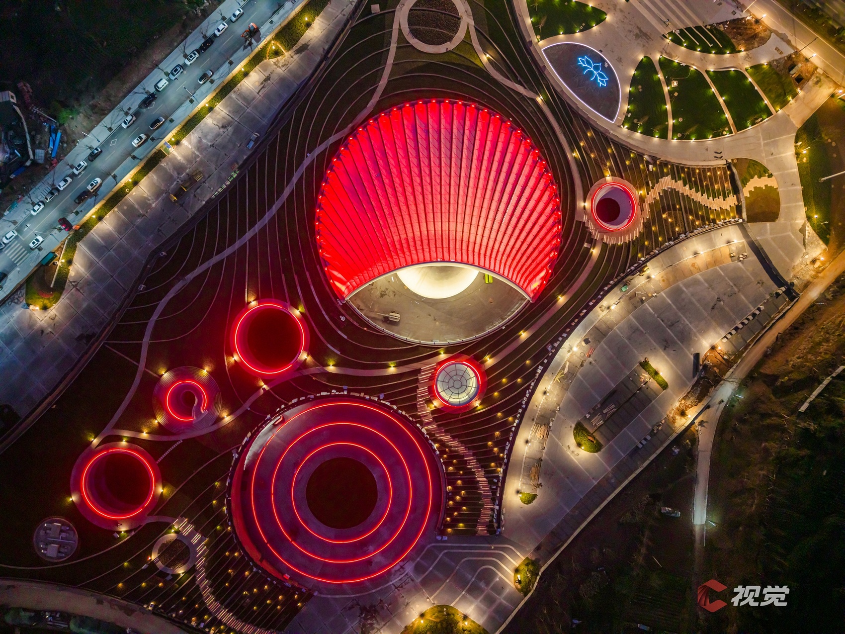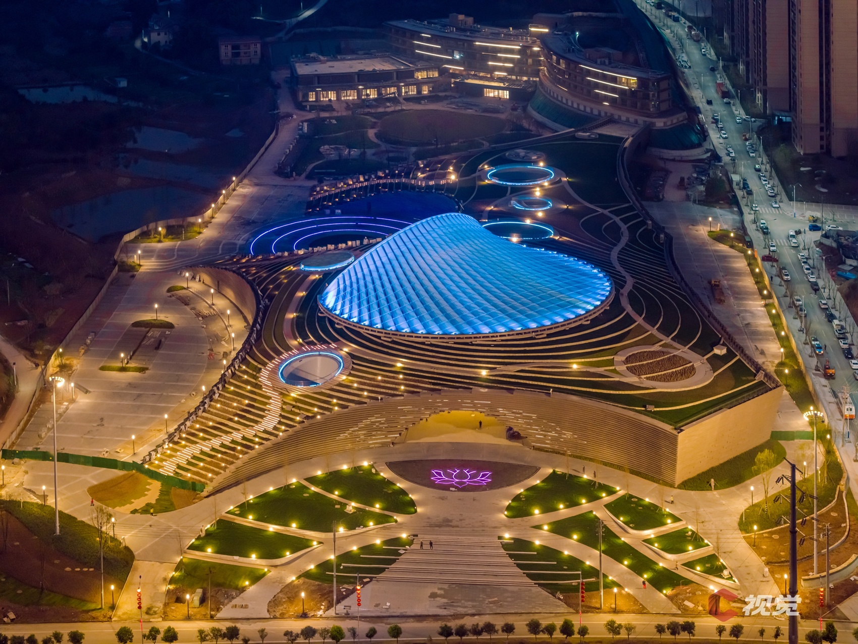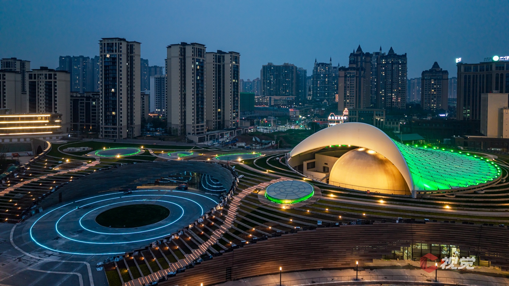 2月19日,地处资阳市安岳县石桥街道广惠村的安岳石窟数字中心外观已全部完工,在前两日,石窟数字中心夜晚试灯开启,四周呈弧形线条的花坛层层扩散,外部造型在现代光影技术的照耀下变成璀璨星河,五彩斑斓的沉浸式灯光秀让这座新的建筑成为城市新地标,引发市民打卡热潮。