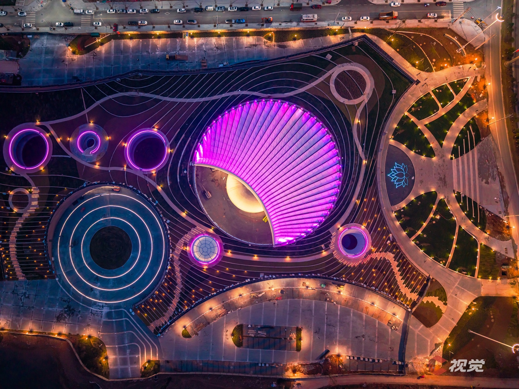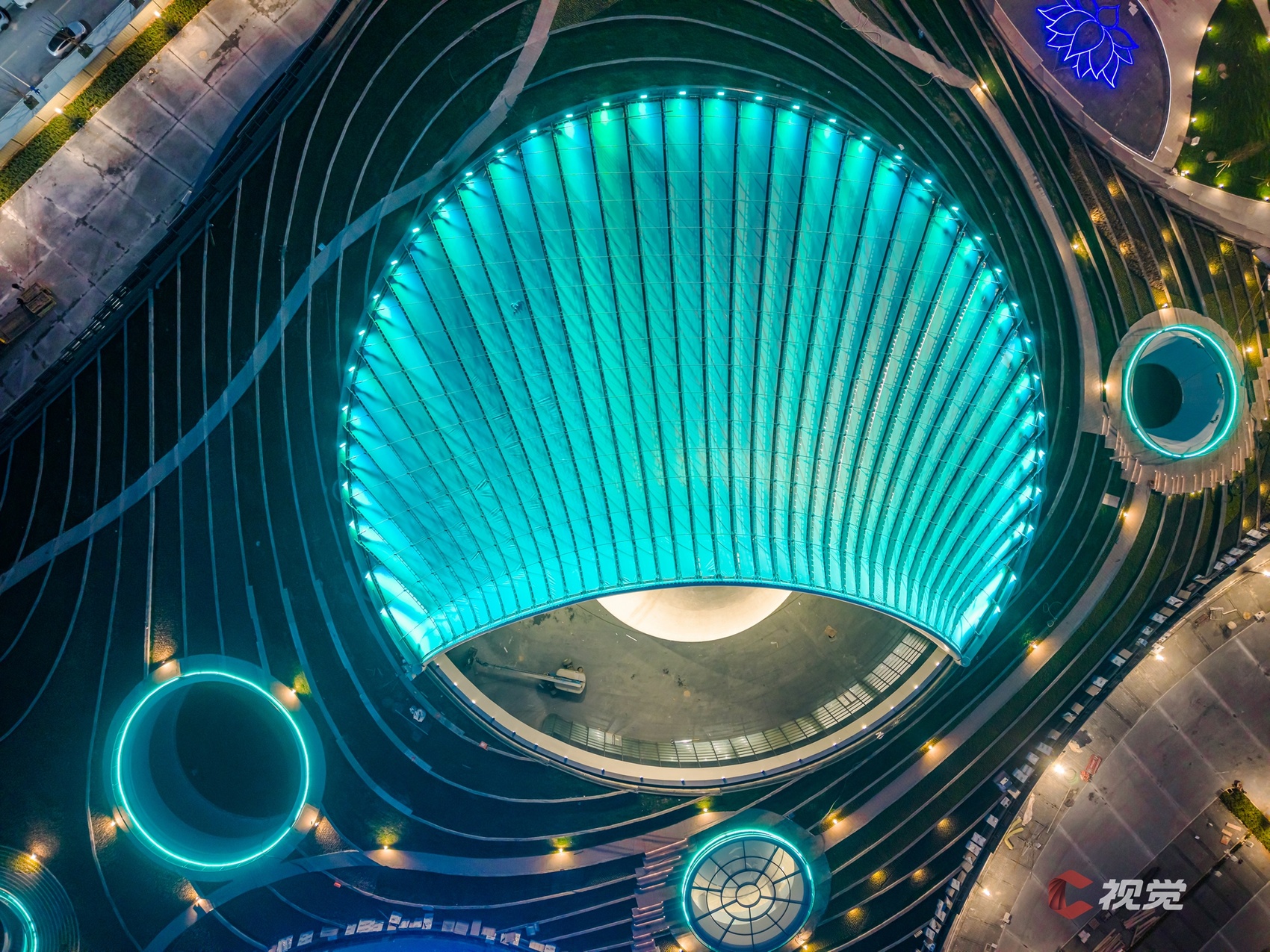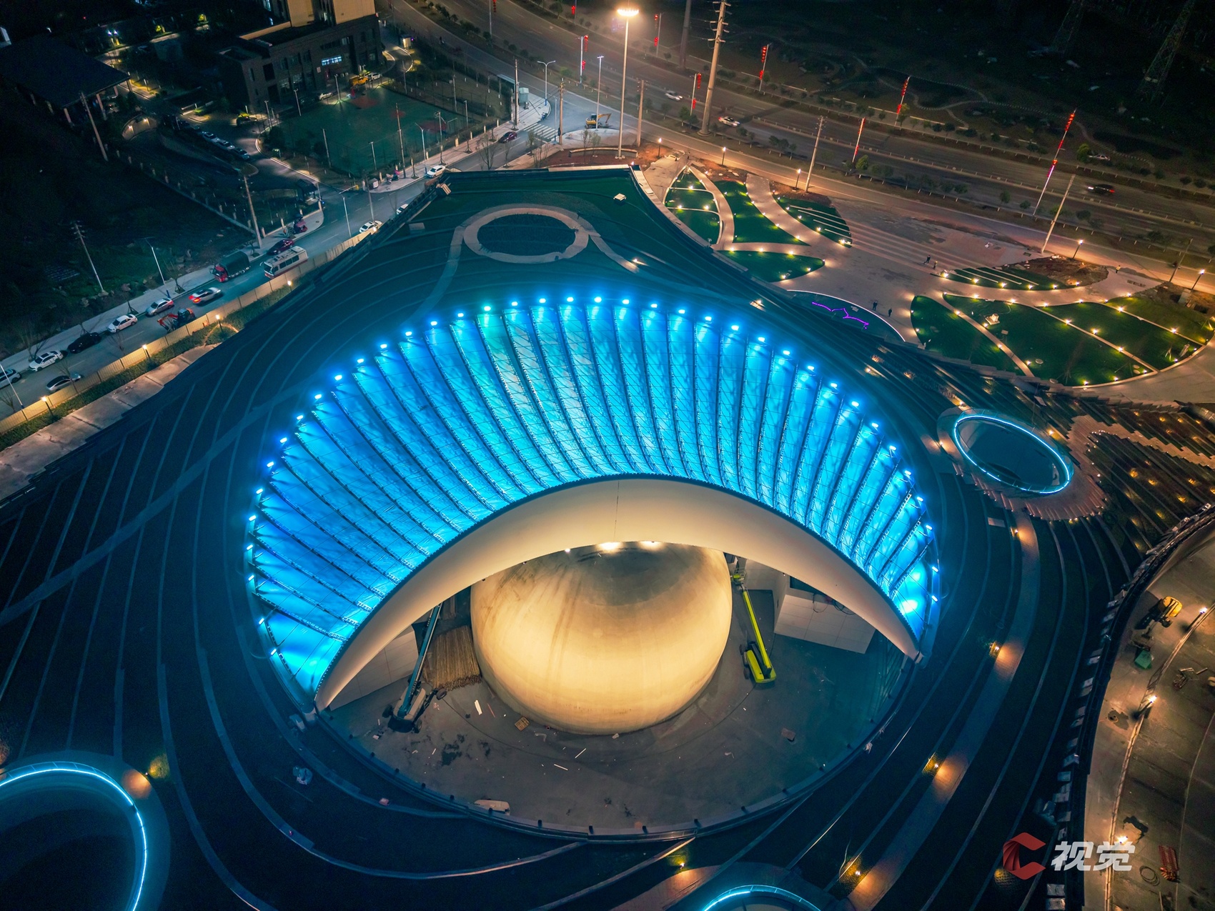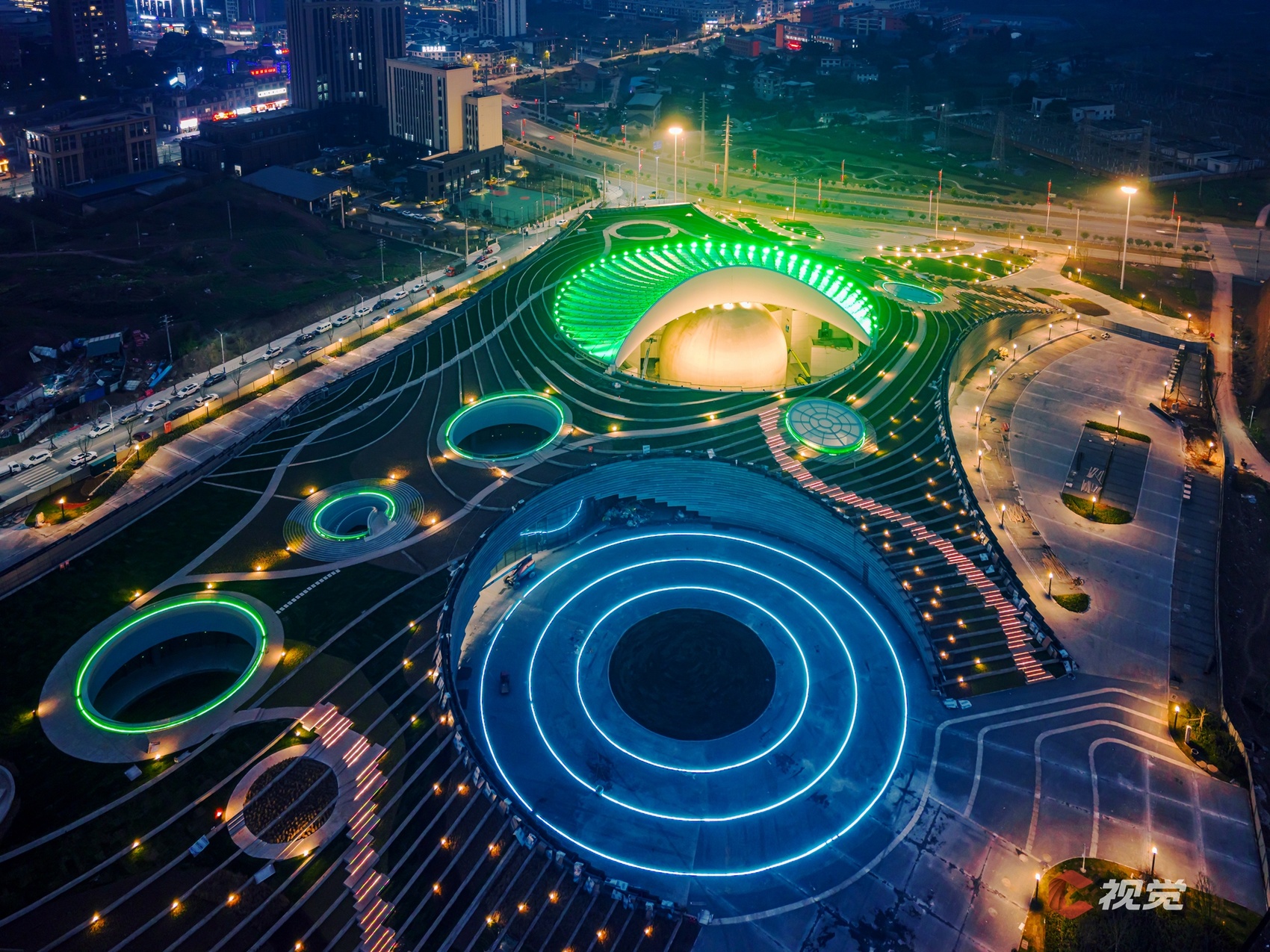 2月19日,地处资阳市安岳县石桥街道广惠村的安岳石窟数字中心外观已全部完工,在前两日,石窟数字中心夜晚试灯开启,四周呈弧形线条的花坛层层扩散,外部造型在现代光影技术的照耀下变成璀璨星河,五彩斑斓的沉浸式灯光秀让这座新的建筑成为城市新地标,引发市民打卡热潮。