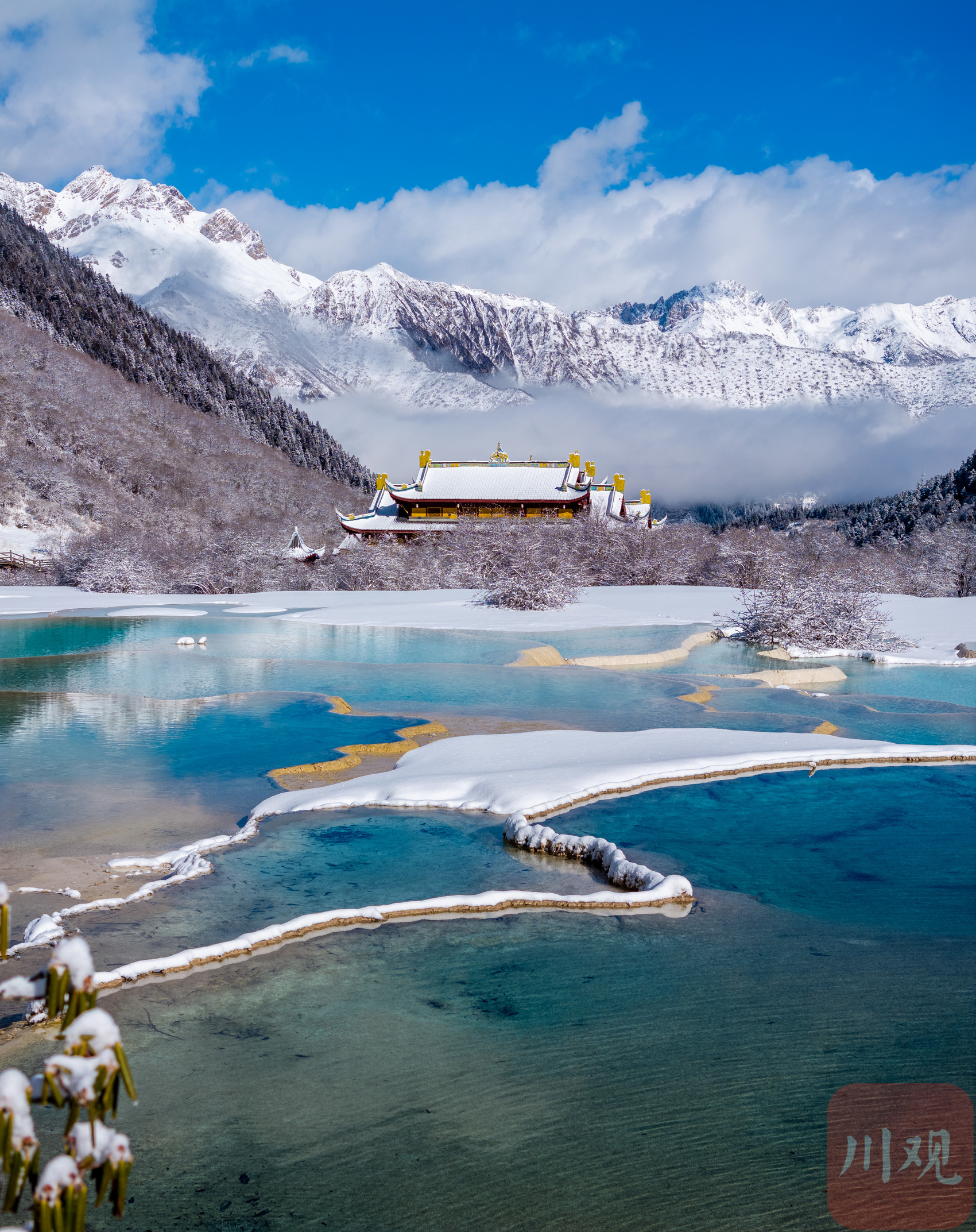 雪后的黄龙景区美到失语,栈道被雪覆盖,彩池泛着独特的光,随便一处景色都美得让人移不开眼,太想去打卡了。