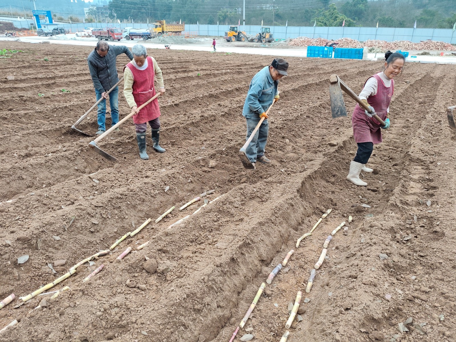 “我们于3年前在内江市市中区龙门镇龙门村建立的临时基地,在2023年5月被确定为四川唯一的省级甘蔗种质资源圃,占地面积3.5亩,有甘蔗新品种50余个。”内江市农业科学院甘蔗研究所所长杨建说,“今年1月,我们把整个种质资源圃搬迁到了史家镇四美桥村,面积扩大到了15亩,将培育260多个甘蔗新品种、新材料。从2月13日开始组织工人播种,预计到2月21日就能播完。”