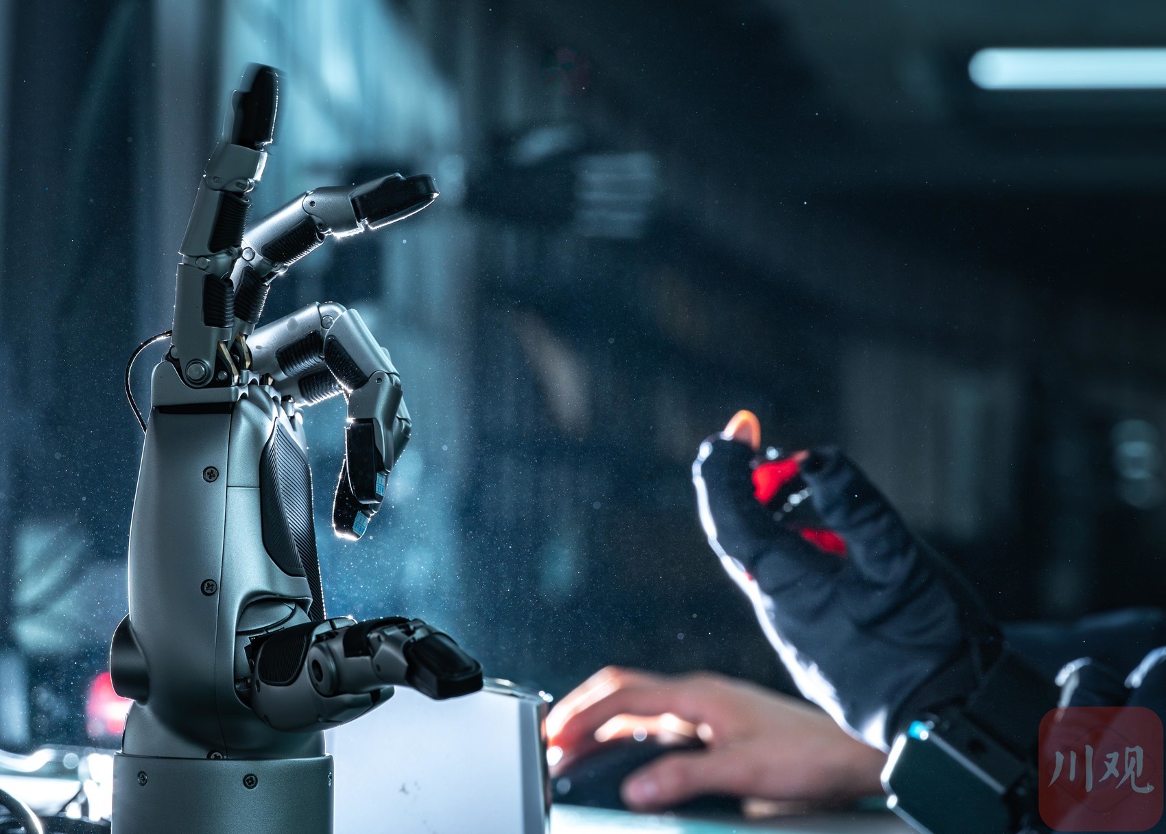 几十公里外的成都科创生态岛,一场人机训练同样精彩纷呈。2月20日,在成都人形机器人创新中心,工程师正通过隔空操控技术进行柔性灵巧手的训练。全金属制成的灵巧手能够实时模仿人手的动作,通过电子皮肤将人手的力度数据转化为代码并存储到数据库中,使其具备与人手相似的力量,从而更好地抓握物品。在这里,已注册科创企业近千家,一座岛就是一个巨大的应用场景验证中心。