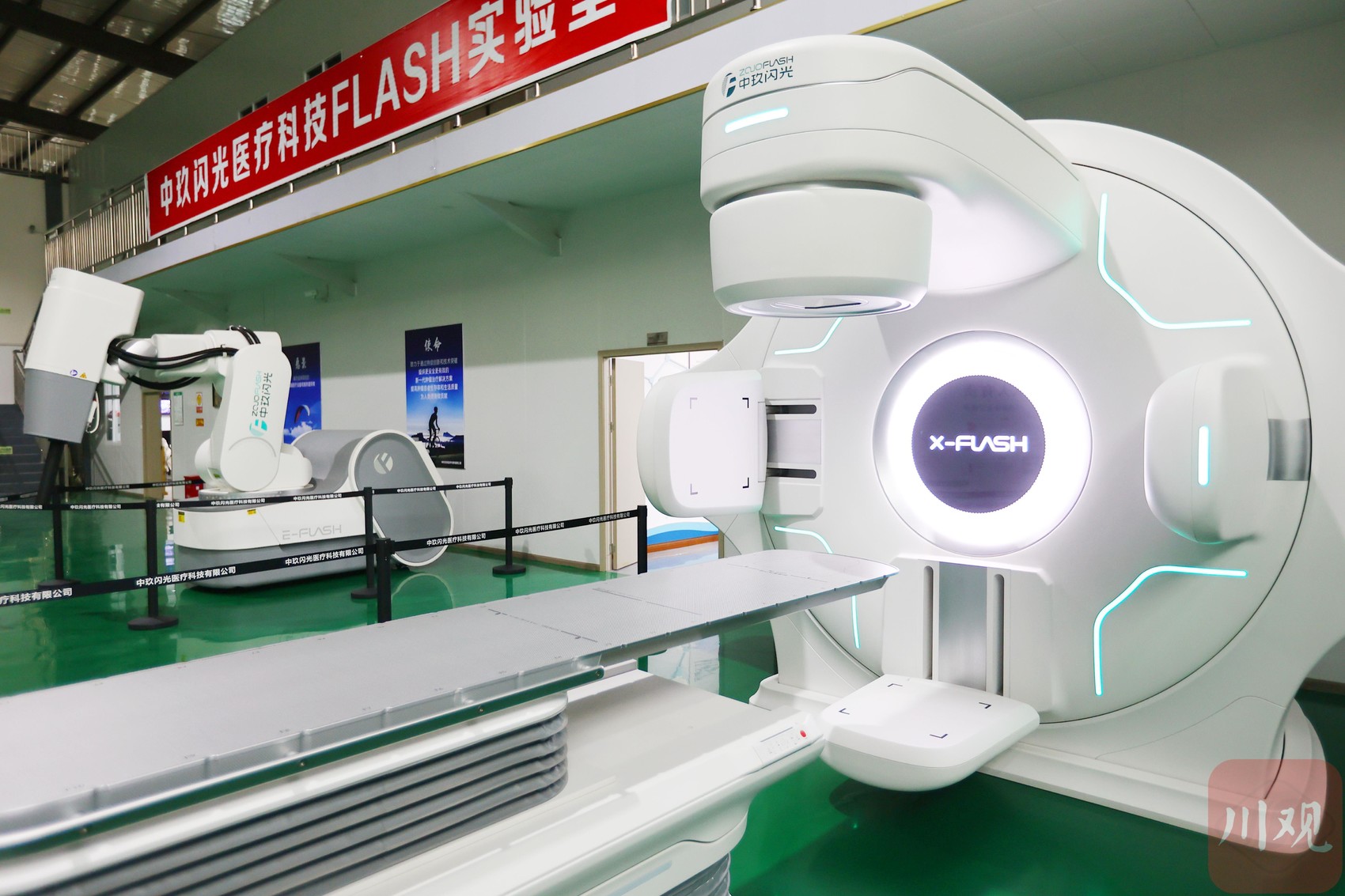 2月19日,绵阳市游仙区中玖闪光医疗科技有限公司调试的e-Flash放疗设备(左)即将进入临床试验阶段。