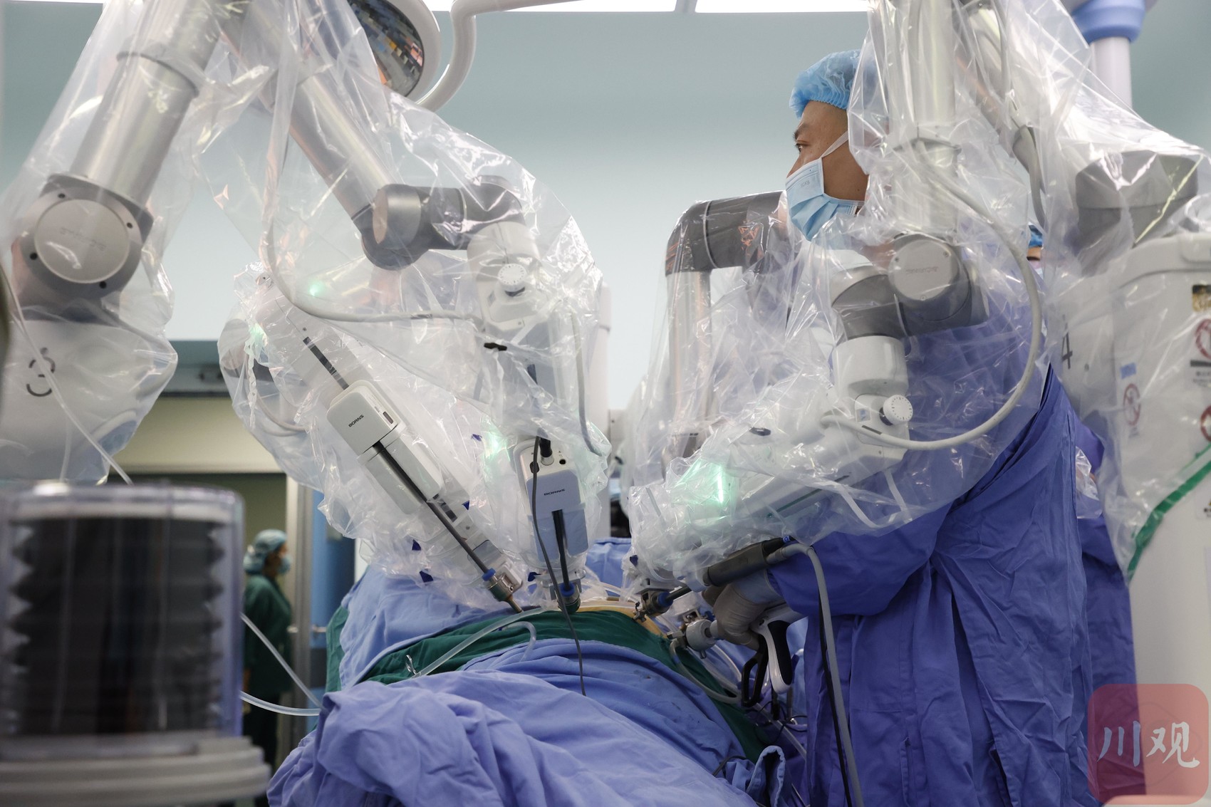 2024年12月6日,在成都市第五人民医院,“成都造”手术机器人成功完成超低位结直肠癌肿瘤切除手术。主刀医生操作4个360度可旋转机械臂,手术出血量仅10毫升。