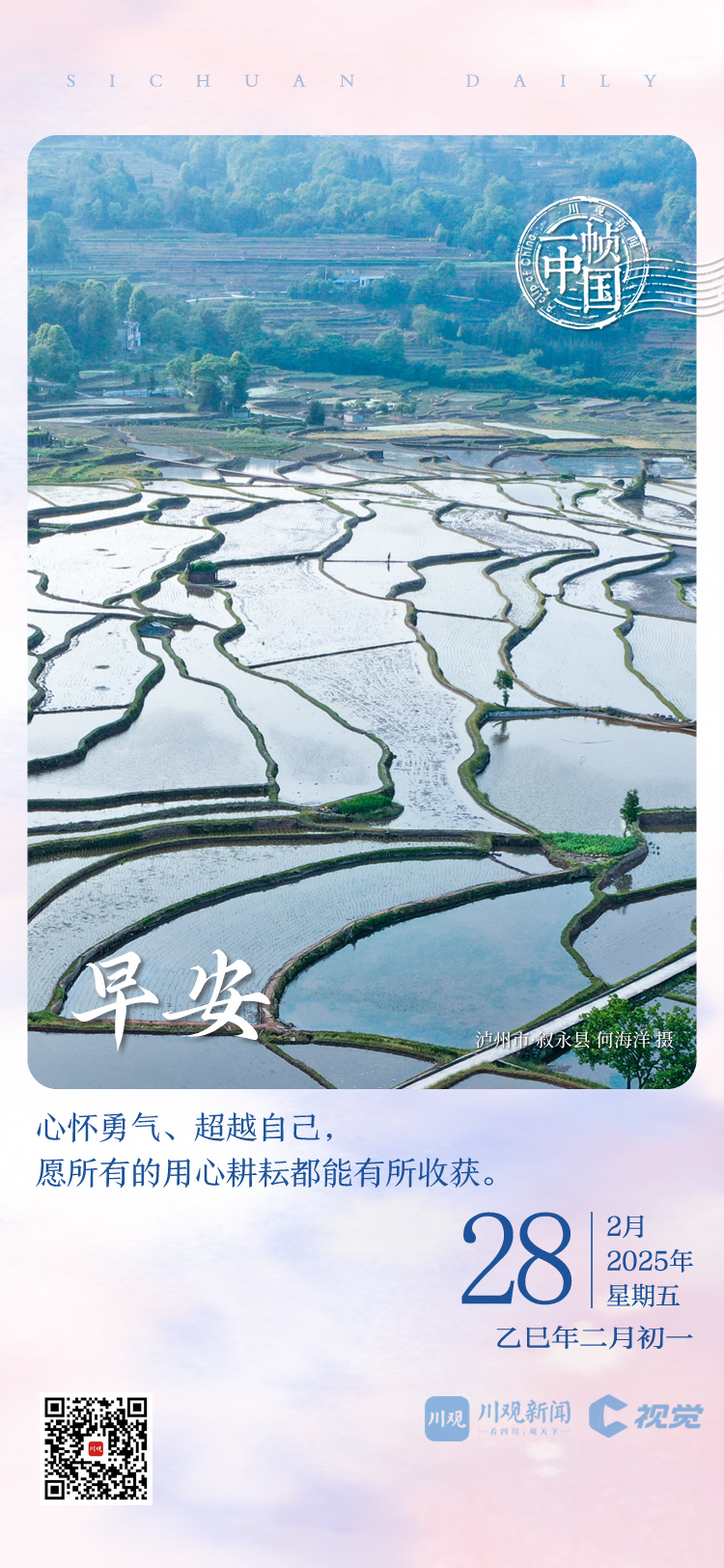 人勤春来早。今天的《一帧中国》,川观新闻带你来到泸州市叙永县叙永镇红岩村,俯瞰正为春耕生产做准备的美丽梯田。