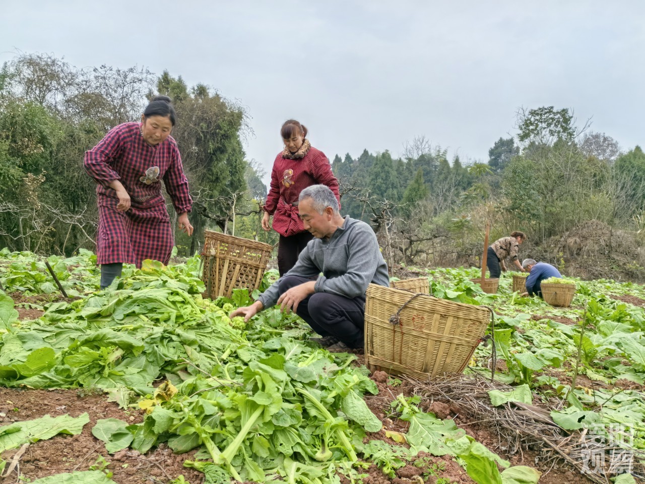 近日,正是榨菜采收季,在中和镇高字村,田间地头套种的榨菜生机勃勃。伴随着吆喝声,村民们散落在四处忙碌起来,他们挥动菜刀,小心将收割好的榨菜剥叶、装背篓、送上车。