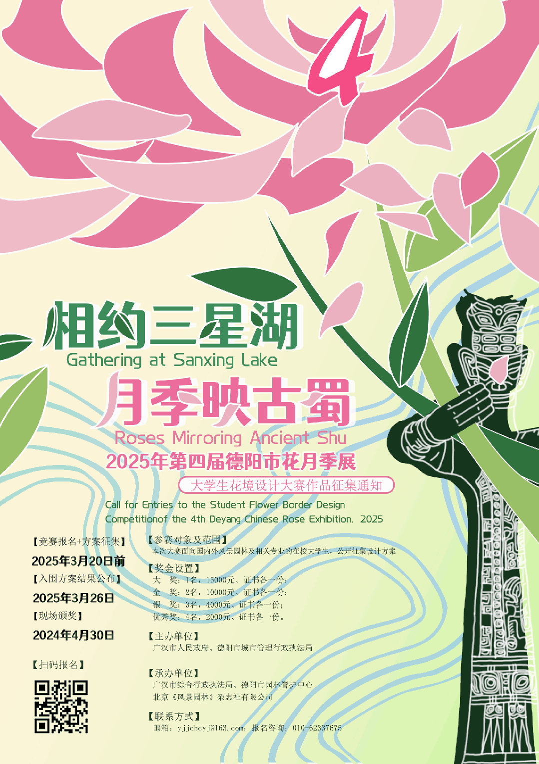 2月24日,川观新闻从德阳市城市管理行政执法局了解到,“2025年第四届德阳市花月季展”拟于2025年“五一”期间在广汉市三星湖举办。作为本次月季展“重头戏”的大学生花境设计大赛也于近日开始报名征集。