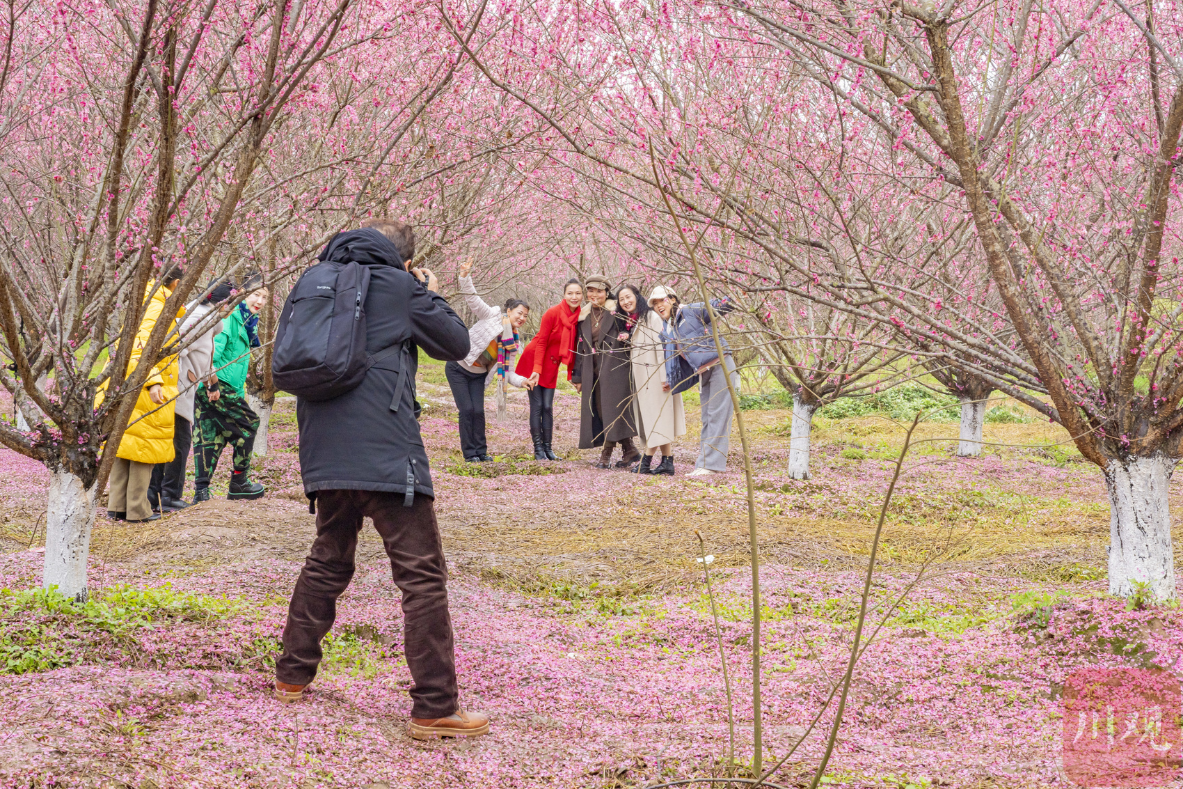 2月25日,资阳市雁江区天空放晴。晏家坝的梅花正迎春绽放,阵阵花香扑面而来。