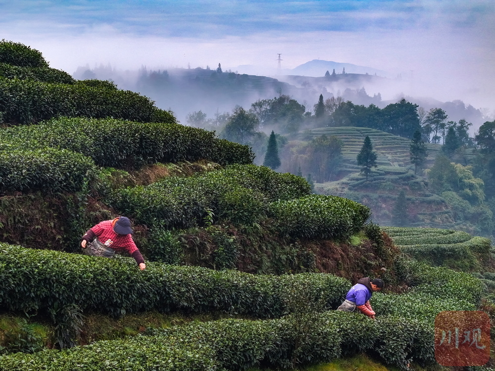 2月25日清晨,雅安市名山区红星镇,雨后初晴的茶园雾气升腾,白雾似轻纱,茶山如碧海……如诗如画。不少游客和摄影爱好者一大早便蹲守茶园,记录下壮美的春日茶乡画卷。