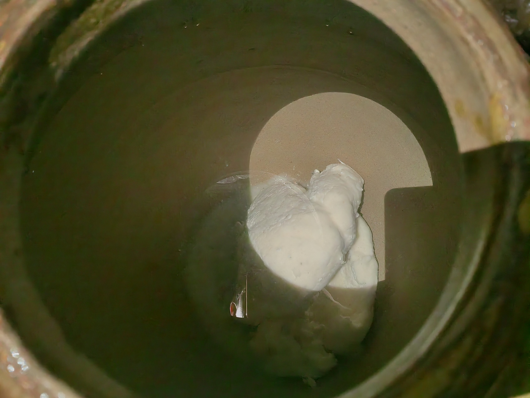 “你们也好这‘口’?”见到调研组一行,圣源酒厂负责人叶奇林有些惊奇,在他看来,只有本地较为年长的消费者才喜欢这款酒。在叶奇林带领下,我们来到酒厂储藏室,走到储藏室尽头,他俯下身子掀开砖头,揭开地上的薄膜,裸露出一个油褐色的陶坛,“这就是我们目前仅有的库存‘猪油酒’了。”
