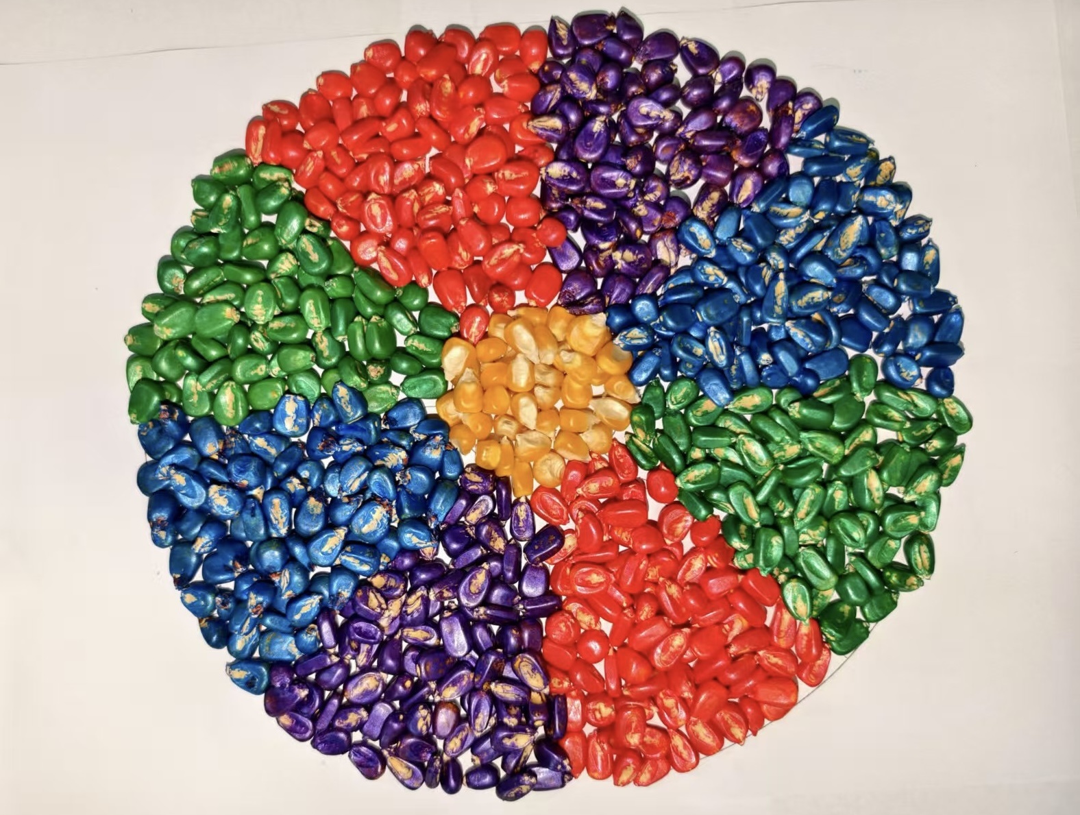 玉米种子各色包衣展示。