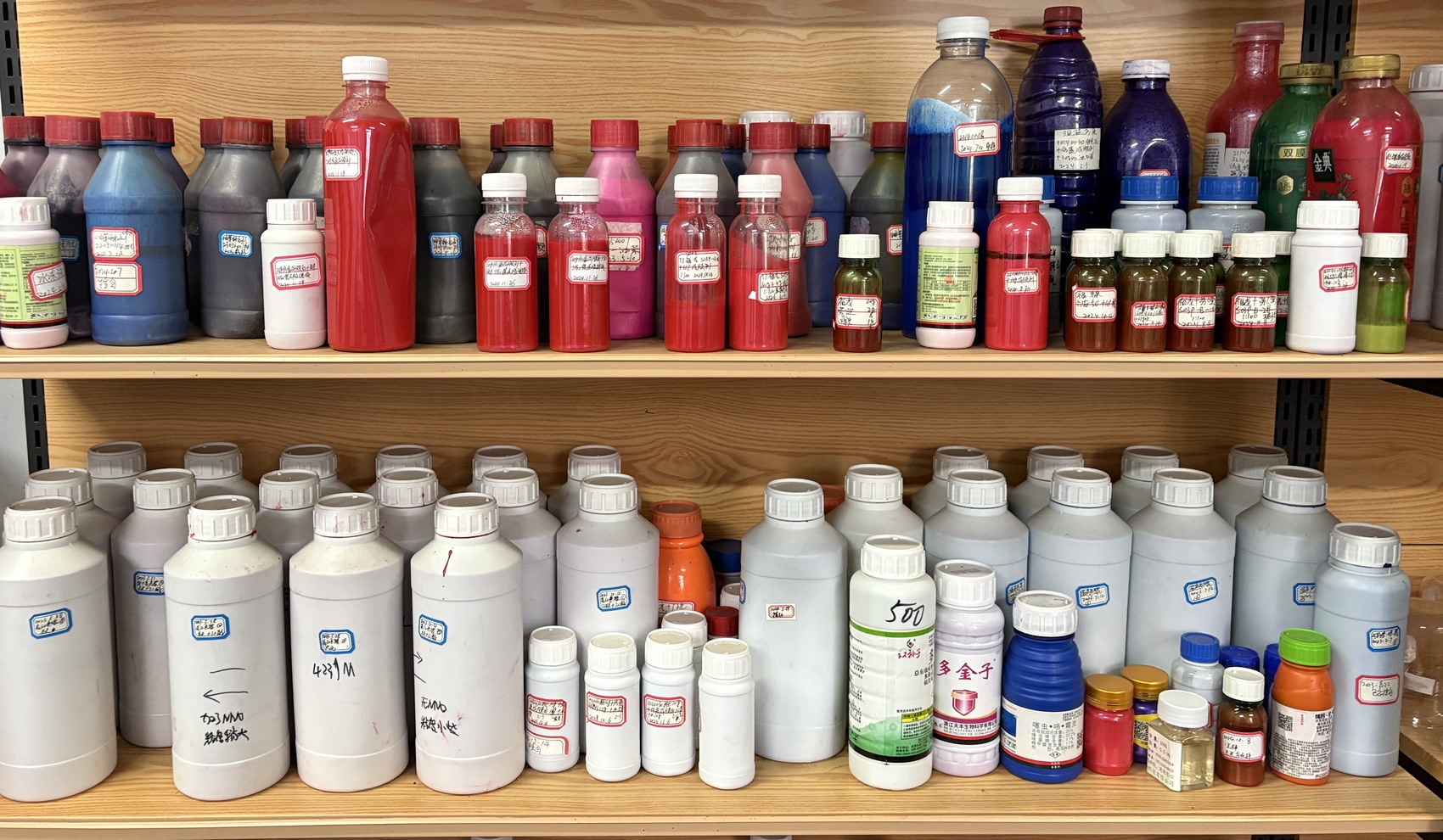 化工配方室各种样品陈列。