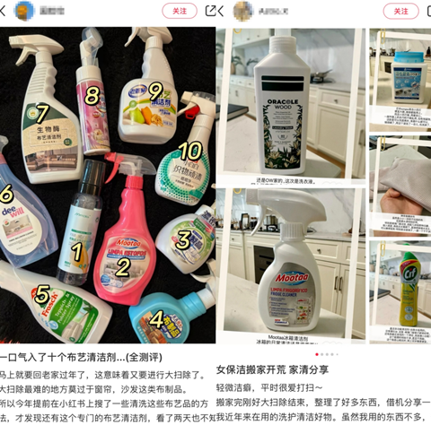 在社交平台上“安利”相关产品也成为一种“潮流”。在小红书平台,不少网友发帖推荐日化家清产品,信息十分详尽。还有网友留言称:“这些产品打开了我的清洁思路。”